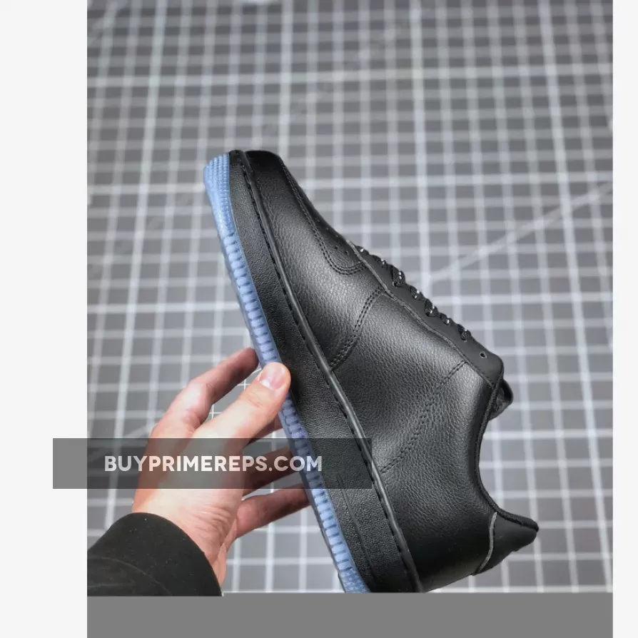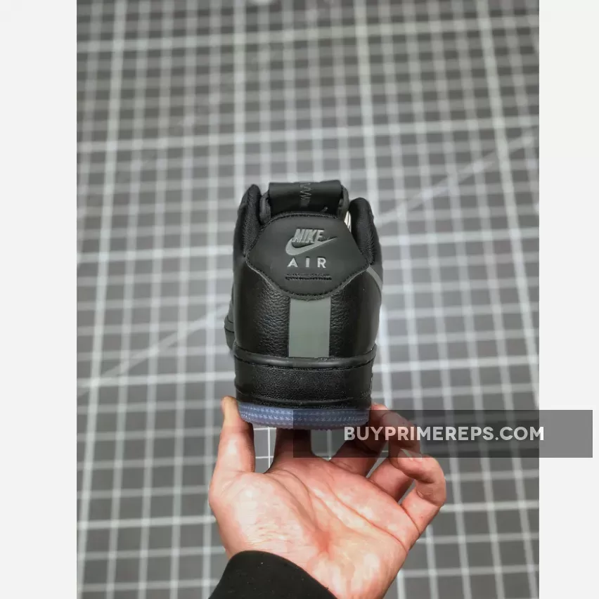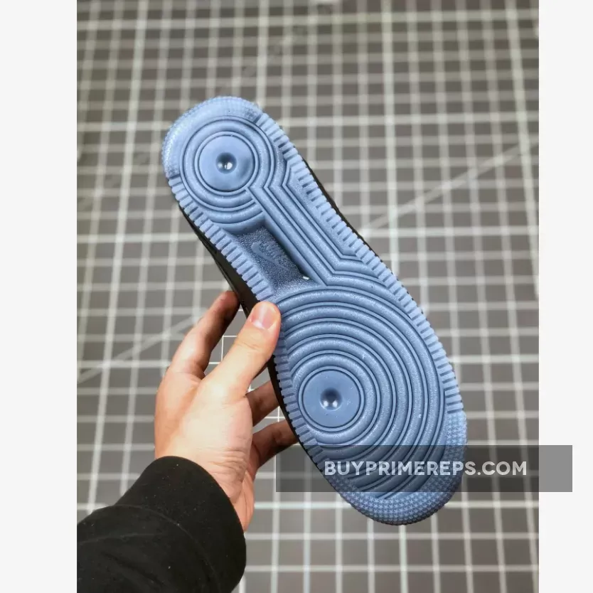 The midsole of the Air Force 1 07 LV8 Black Grey is completely blacked out, creating a sleek and uniform aesthetic. The icy blue rubber outsole adds a touch of winter-inspired style, making this shoe a standout choice for the colder months.
