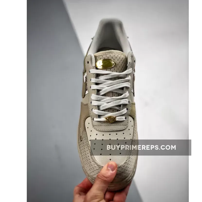 To add a touch of luxury, metallic gold accessories are incorporated throughout the shoe. These gold accents add a touch of elegance and elevate the overall design. Whether it’s the gold lace dubrae or the gold Nike branding on the tongue, these details add a touch of sophistication to the Air Force 1 Low Tan Bling.