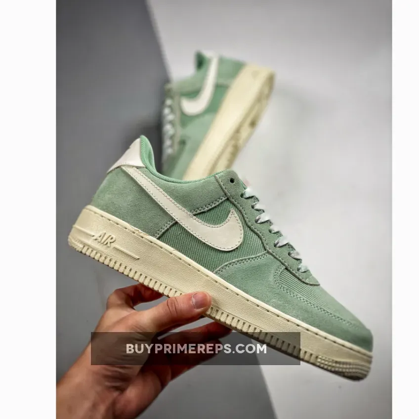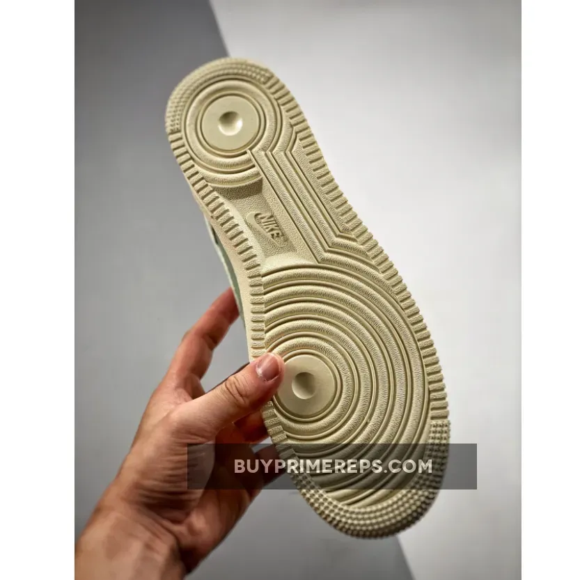One standout feature of the Nike Air Force 1 Low “Enamel Green” is the slightly yellowed chunky sole. This sole not only adds a unique touch to the shoe’s aesthetic but also provides comfortable cushioning for all-day wear. It combines style and functionality seamlessly, making it the perfect sneaker for any occasion.