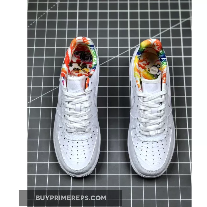 The Nike Air Force 1 Low “Chinese New Year” is a special edition sneaker that celebrates the Chinese holiday with a unique and intricate design. Unlike previous Lunar New Year-themed releases, this rendition takes a more subdued and elegant approach, featuring a clean white upper adorned with embossed Chinese patterns and designs. The patterns on the shoe draw inspiration from traditional Chinese Yuxian paper-cutting, showcasing textured motifs of animals, flowers, landscapes, and folkloric objects. The result is a visually captivating mosaic that pays homage to Chinese cultural traditions.