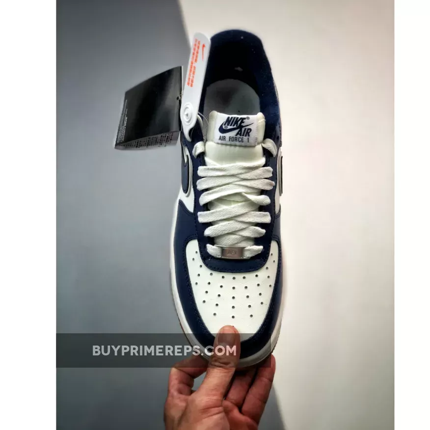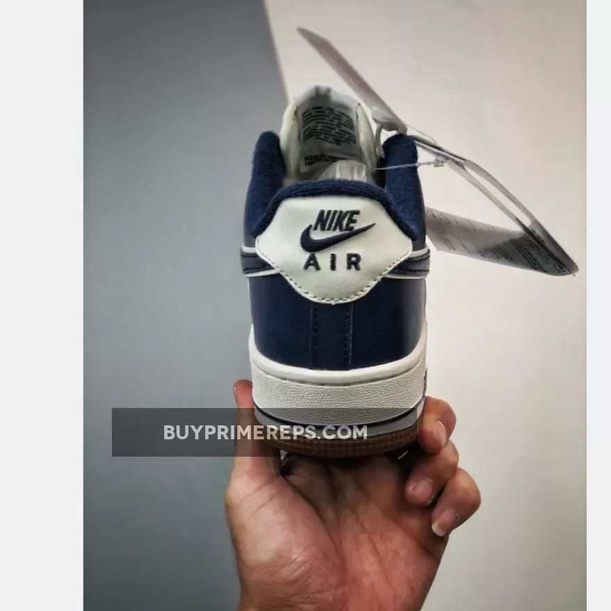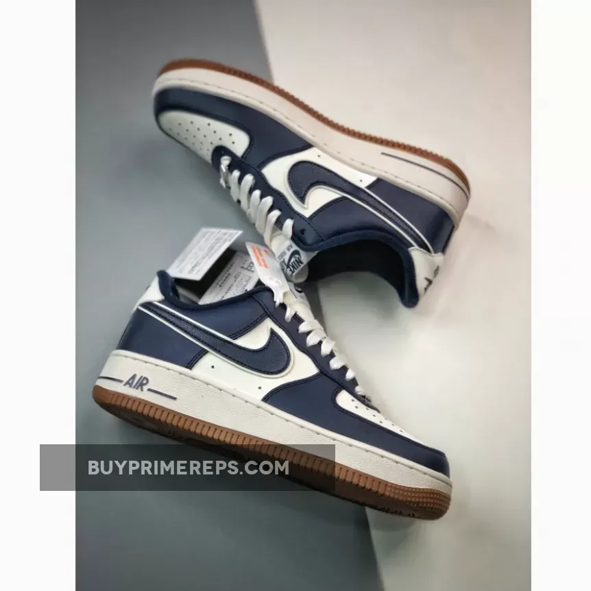 Adding a touch of contrast to the design, the Nike Air Force 1 Low College Pack features navy blue hits throughout the shoe. These navy accents can be found on the leather overlays, terry cloth lining, tongue branding, and heel tab branding. The navy detailing creates a subtle yet eye-catching contrast against the white leather, adding depth and dimension to the overall design.