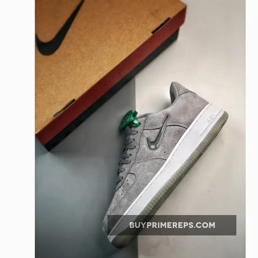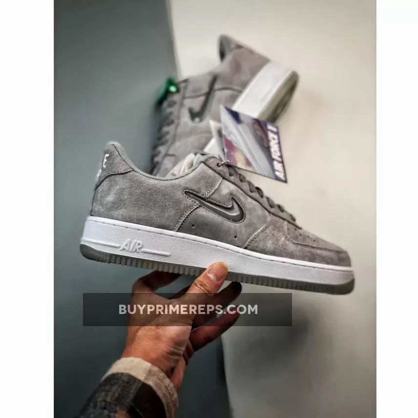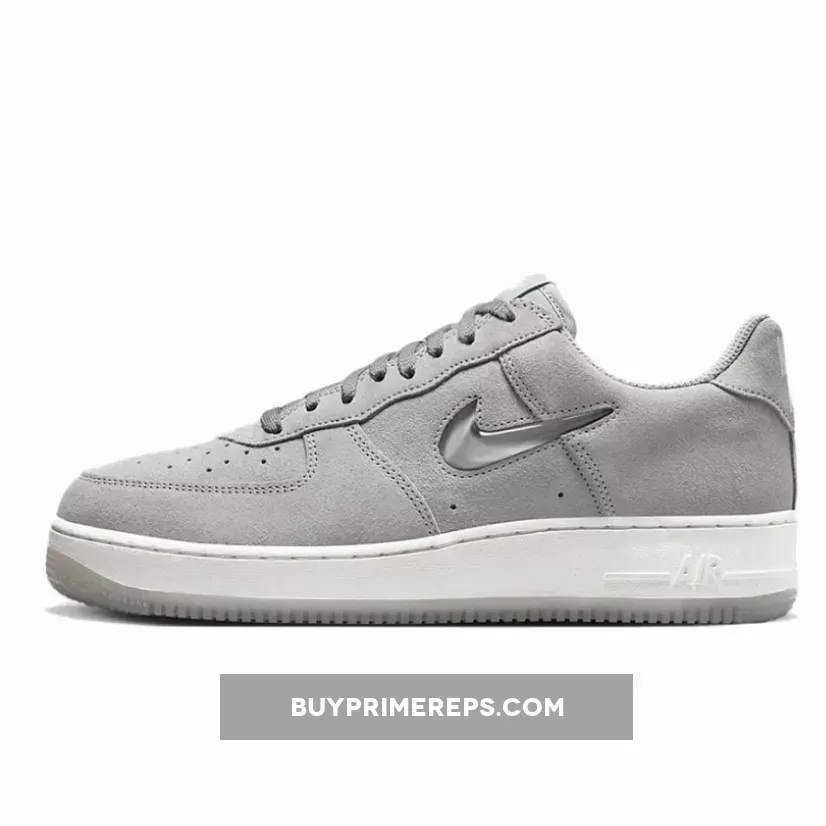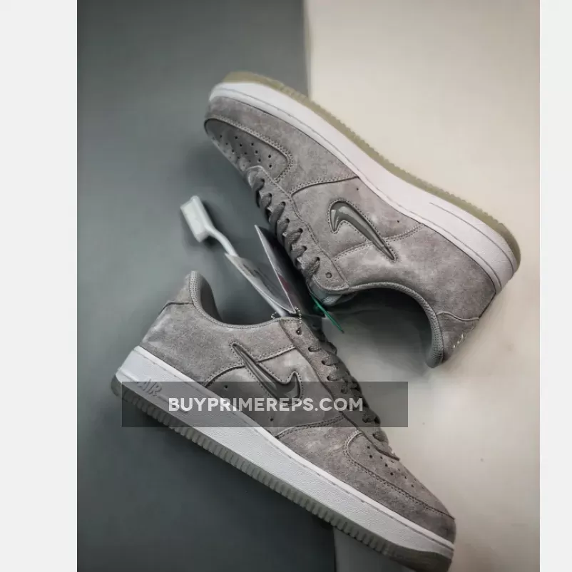 Introducing the Nike Air Force 1 Low Jewel Grey, a special edition sneaker that celebrates the iconic silhouette’s 40th anniversary with luxurious touches and a clean, sophisticated design. Crafted with premium Smoke Grey suede, this AF1 features a monochromatic color scheme that exudes elegance from every angle.