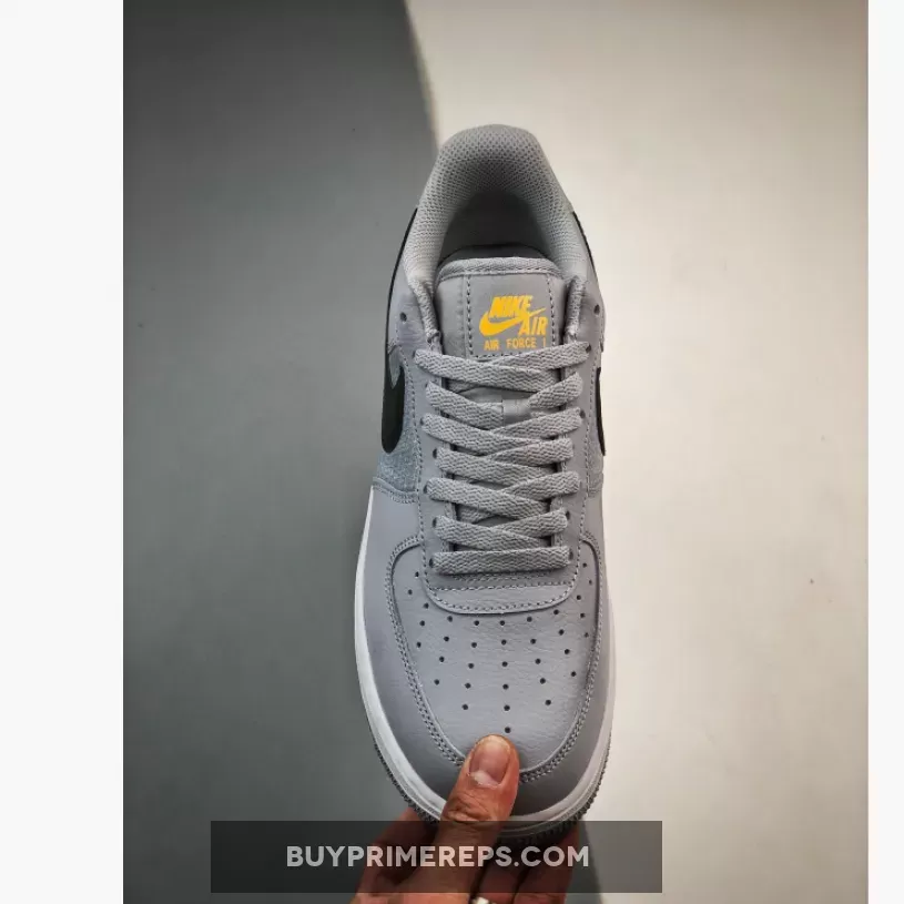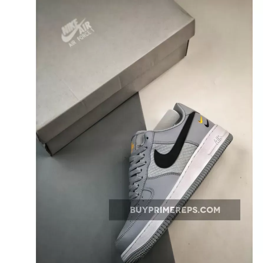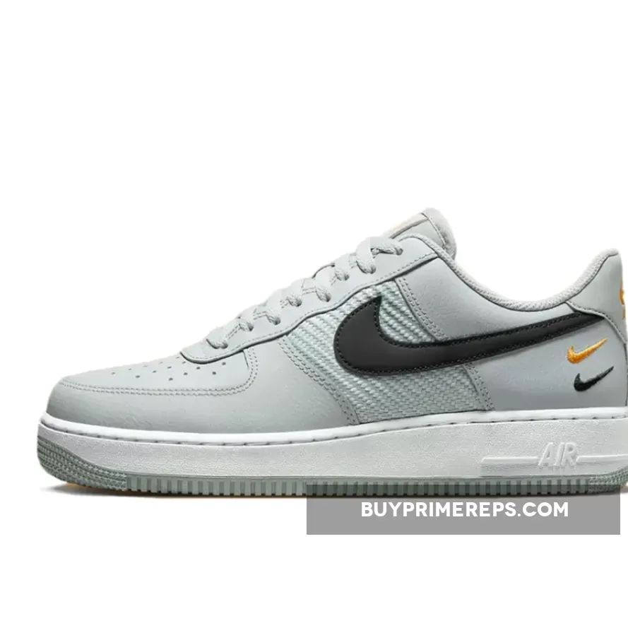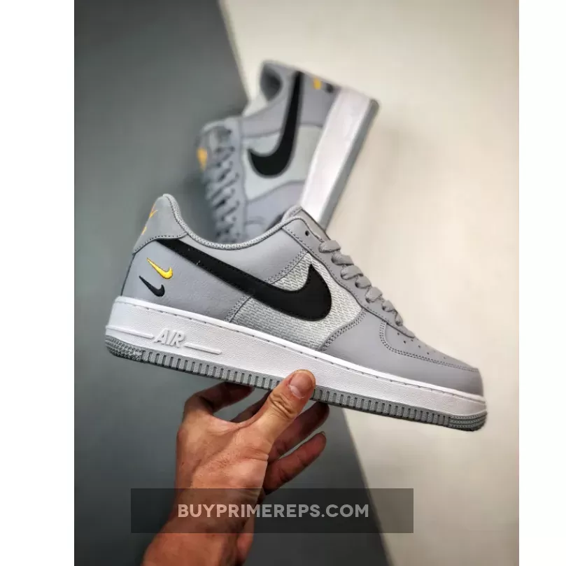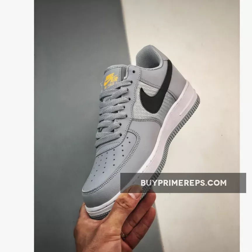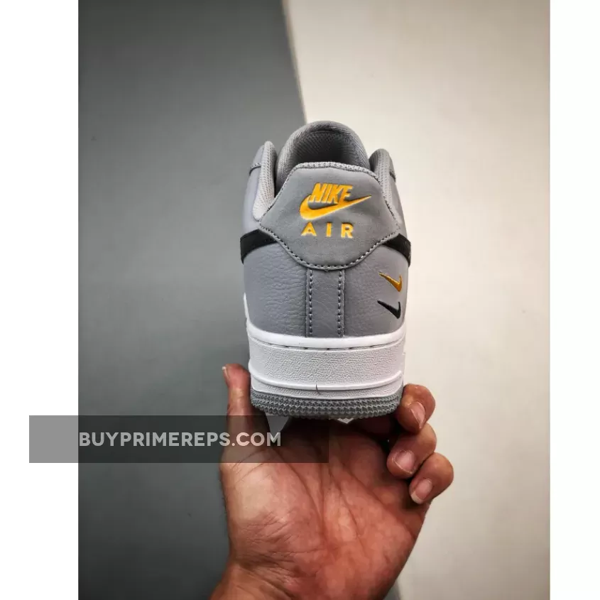 To complement the sleek and sophisticated upper, the shoe is equipped with matching flat laces and a lightweight tongue, ensuring a secure and comfortable fit. The standout feature of this Air Force 1 iteration is the Triple Swoosh detail. The lateral ankles boast black and yellow mini embroidered Swooshes, adding a subtle yet eye-catching touch to the design. The side panels feature large black Swooshes, further emphasizing the iconic Nike branding. Additional yellow branding can be found on the tongues, insoles, and heels, adding a pop of color and completing the overall look.