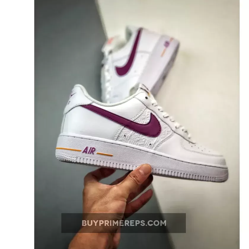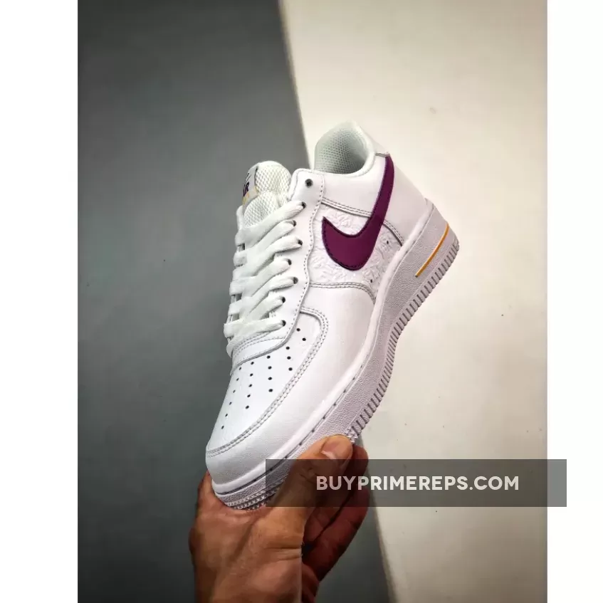 Introducing the Nike Air Force 1 Low EMB “Lakers” White/Bold Berry, a fresh new addition to Nike’s iconic Air Force 1 line. This sneaker pays homage to the Los Angeles Lakers basketball team, known for their vibrant purple and gold color scheme. With its sleek and classic design, the Air Force 1 Low EMB is a must-have for sneaker enthusiasts and Lakers fans alike.