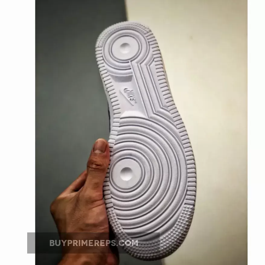 The shoe features a clean white leather upper, constructed with both smooth and tumbled leather for added texture and style. But what sets this pair apart is the retro-inspired Nike Basketball motifs embossed on the side panels. This unique detail adds a touch of nostalgia and pays tribute to the Air Force 1’s ’80s sporting roots.