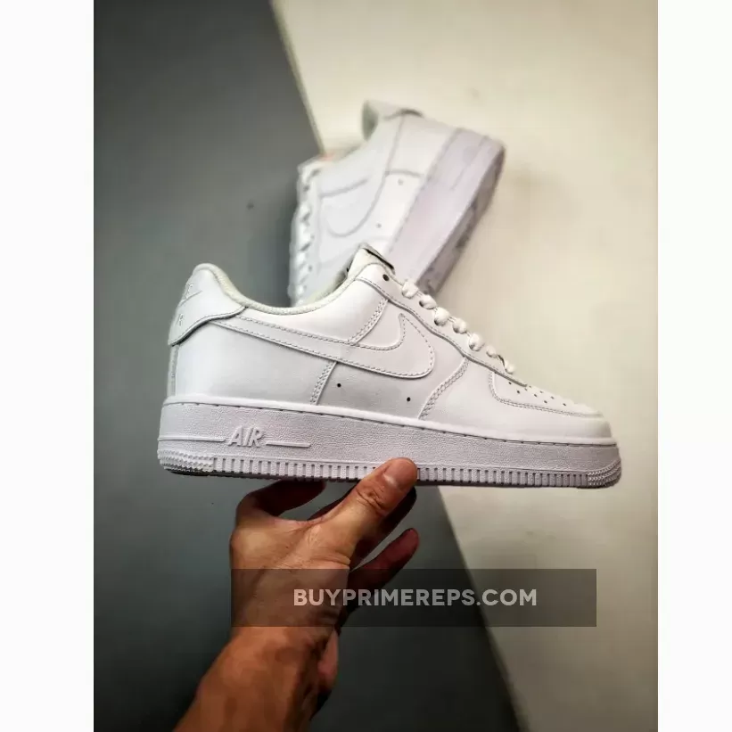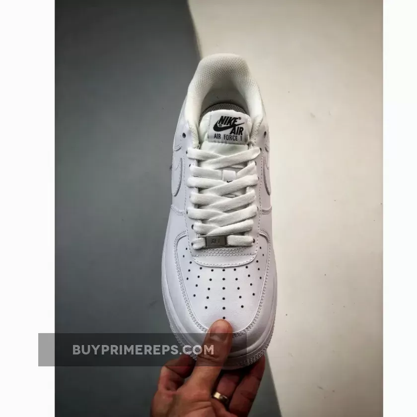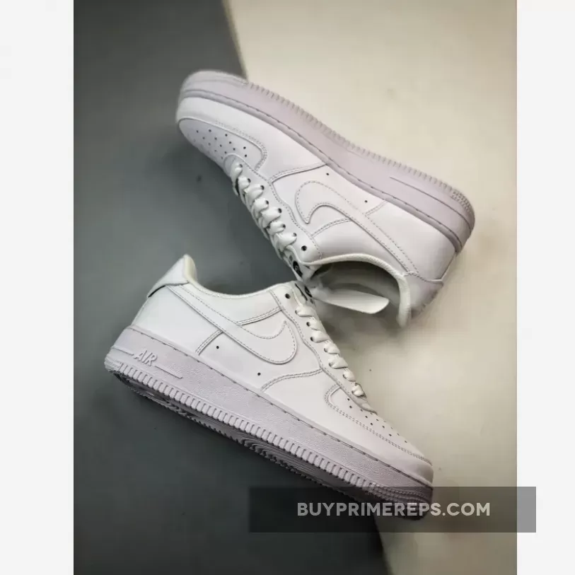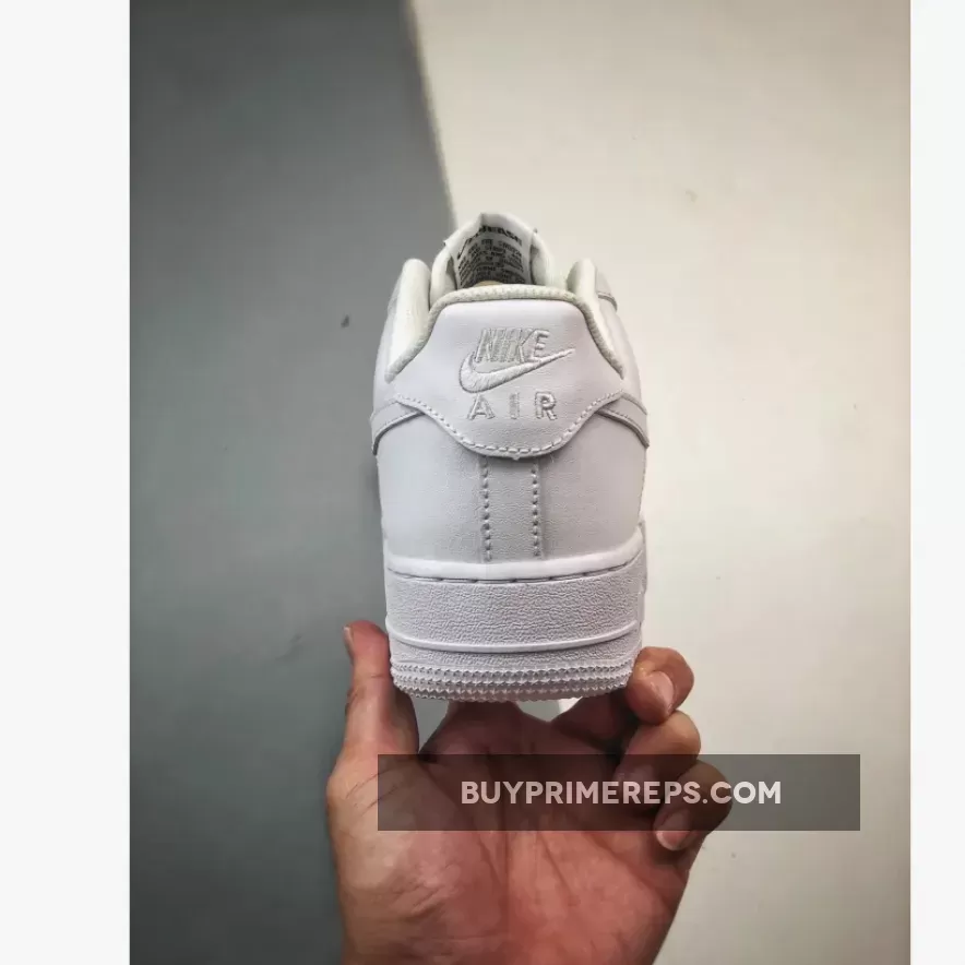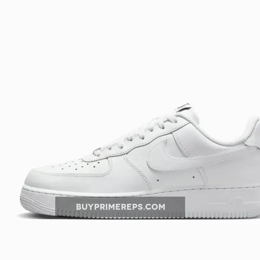 The shoe features the familiar color blocking of the original Air Force 1, with white leather covering the upper, midsole, and outsole. The only contrasting detail comes in the form of black Nike Air and Flyease branding on the tongue tab and insoles. This subtle touch adds a touch of contrast to the otherwise monochromatic design.