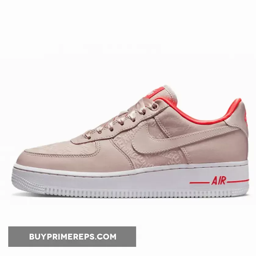 Introducing the Nike Air Force 1 Low Satin Blush, a stunning sneaker that combines a unique blend of blush pink and vibrant crimson. This latest release from Nike is sure to turn heads with its eye-catching colorway and premium materials.