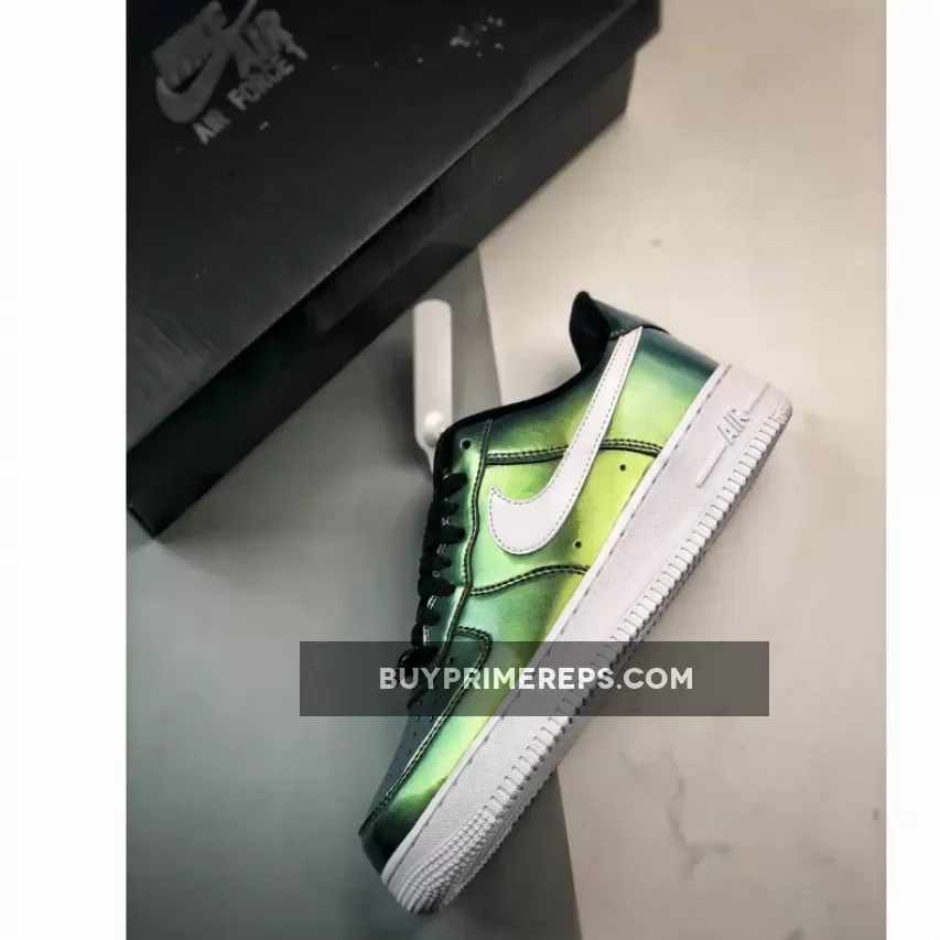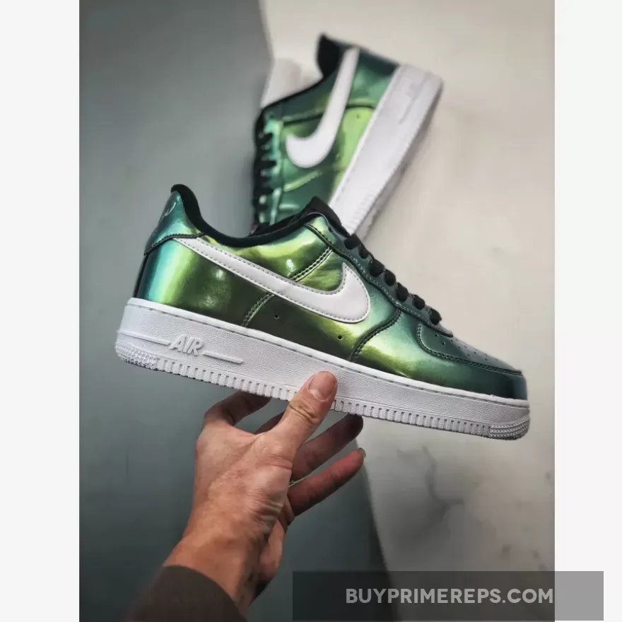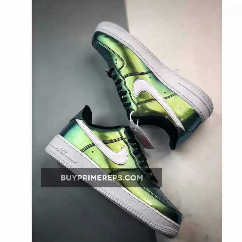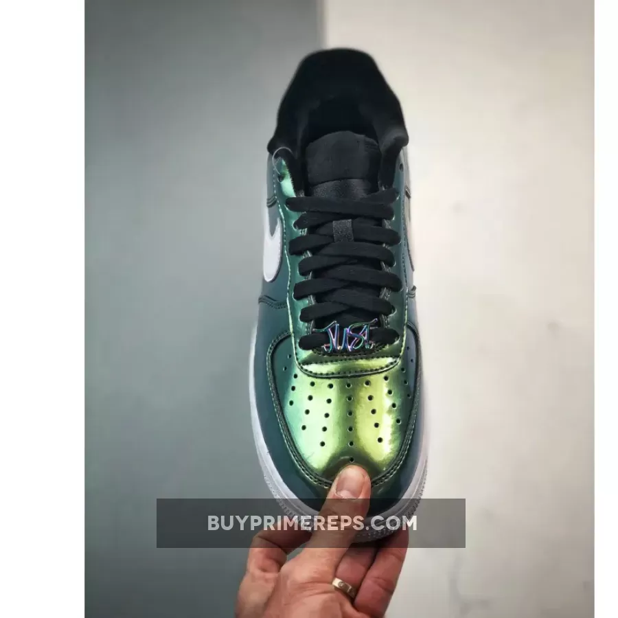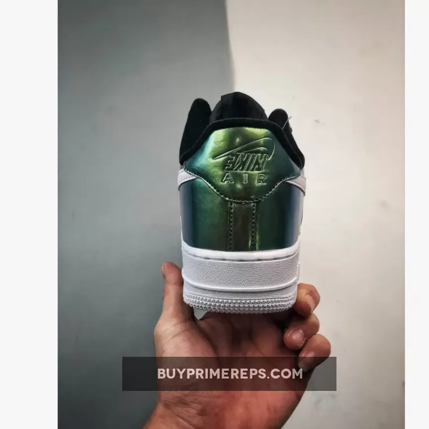 The Nike Air Force 1 Low “Just Do It Iridescent” is a shoe that is perfect for those who want to stand out from the crowd. With its full-iridescent upper, this shoe features a unique and eye-catching design. The glossy iridescent construction showcases brown and green accents, giving the shoe a dynamic and vibrant look. The white pebbled leather Swooshes contrast beautifully against the darker base, adding an extra touch of style to the shoe.