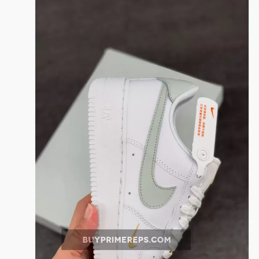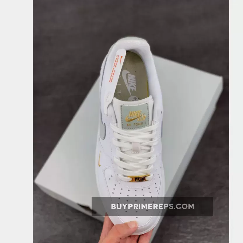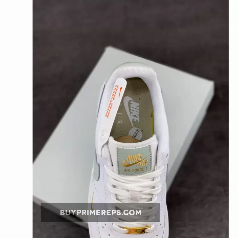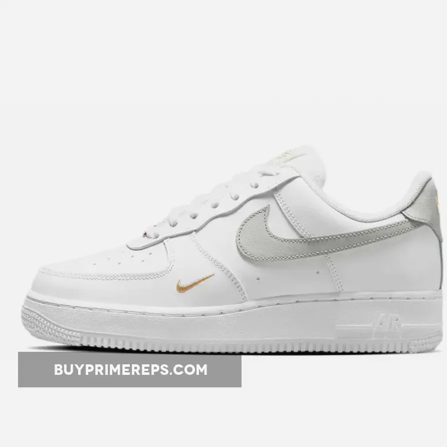 Overall, the Nike Air Force 1 Mini Swoosh in White, Grey, and Gold is a standout sneaker that effortlessly combines heritage design with modern flair, making it a worthy addition to any footwear rotation.