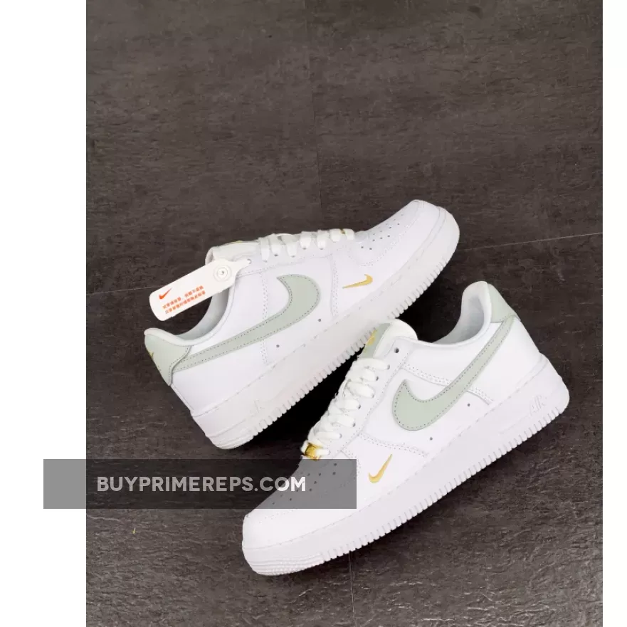 The Nike Air Force 1 Mini Swoosh in White, Grey, and Gold is a stunning iteration of the classic Air Force 1 silhouette. This sneaker showcases a timeless low-top design with a clean and versatile color scheme that makes it easy to pair with a wide range of outfits.