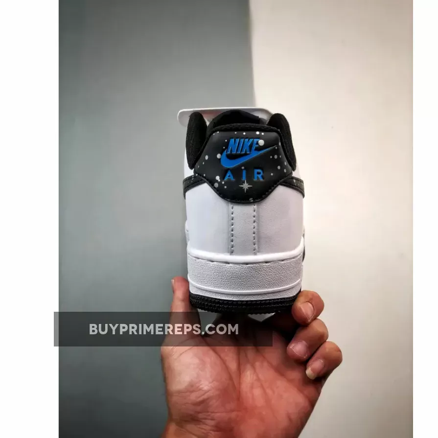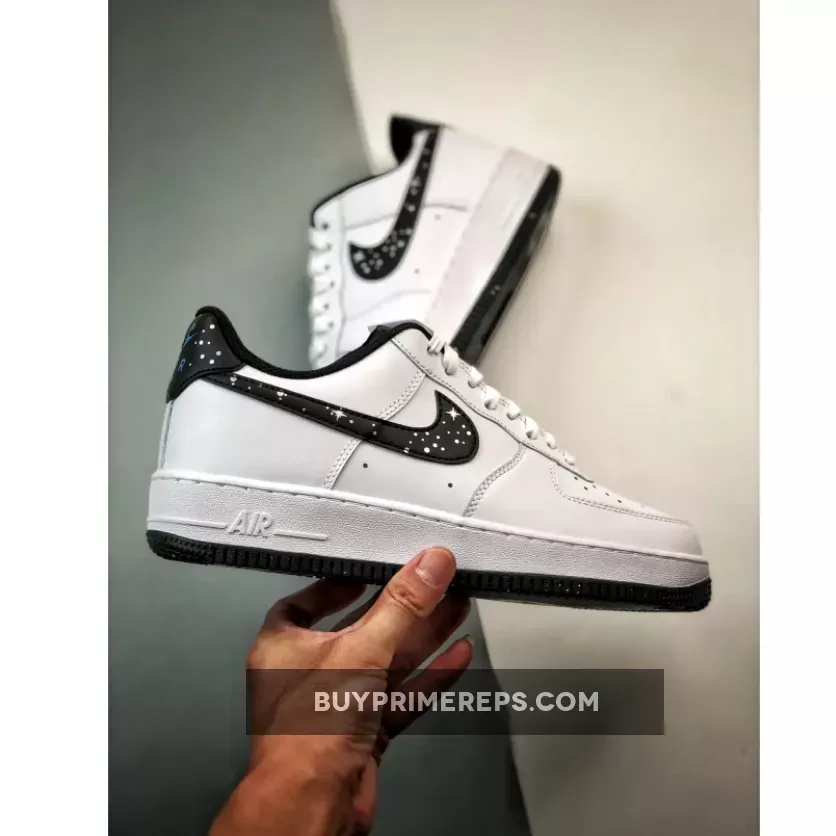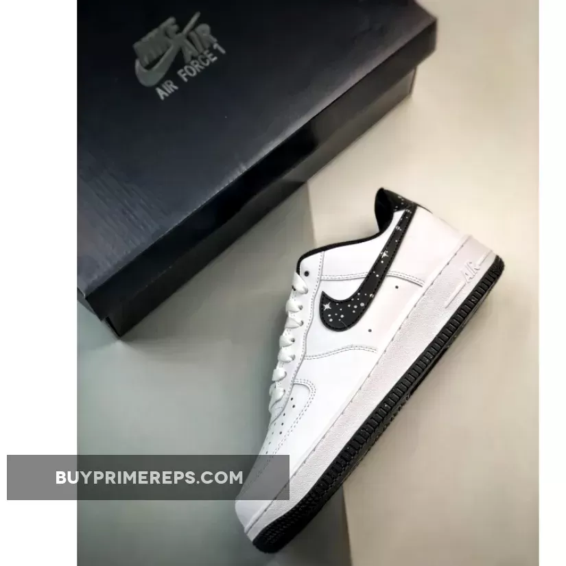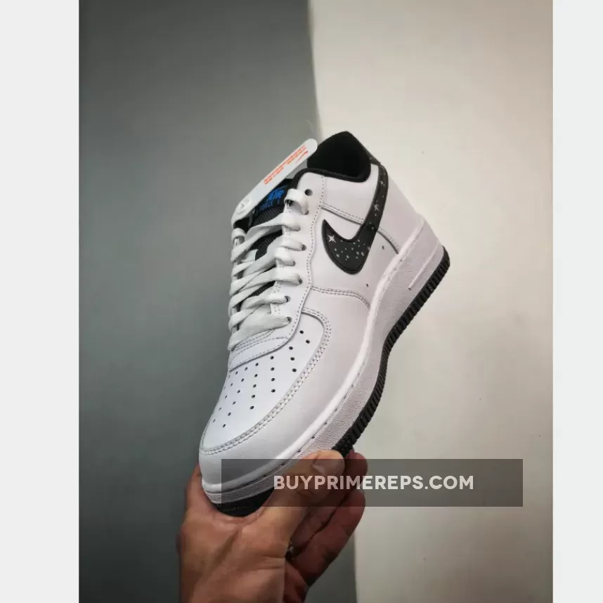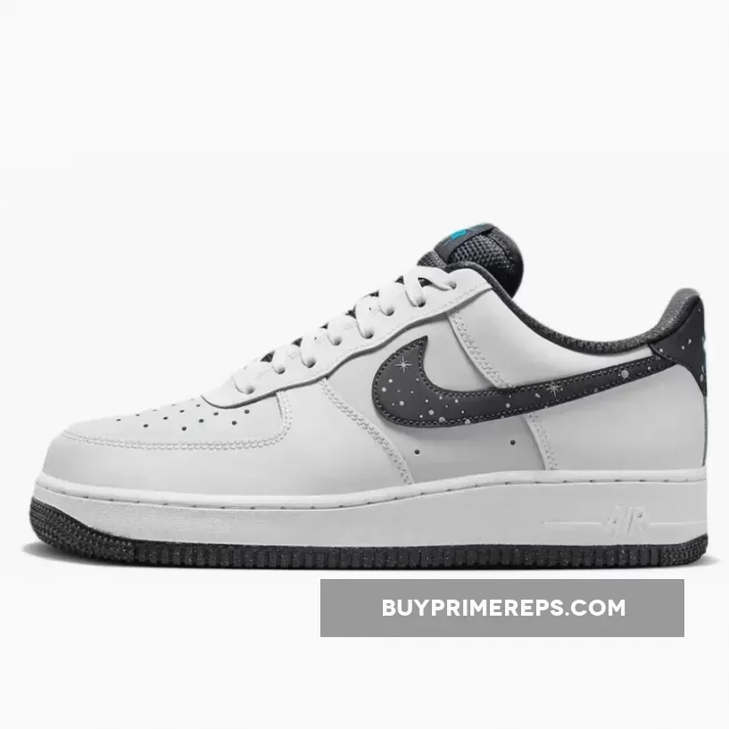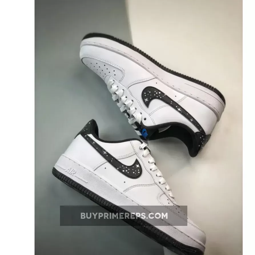 The Air Force 1 Low Night Sky features a clean and classic white upper, with contrasting black and grey accents. The upper is constructed with a combination of leather and synthetic materials, ensuring durability and a premium look. The iconic Nike Swoosh is prominently displayed on the sides, adding to the shoe’s signature style.