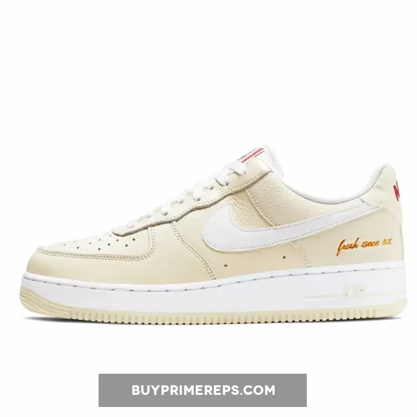 One of the standout features of the Nike Air Force 1 Low Premium Popcorn is the “Fresh Since ’82” embroidery on the lateral ankle. This detail not only celebrates the Air Force 1’s birth year but also serves as a clever nod to the shoe’s timeless appeal, just like a bag of popcorn that never goes out of style.