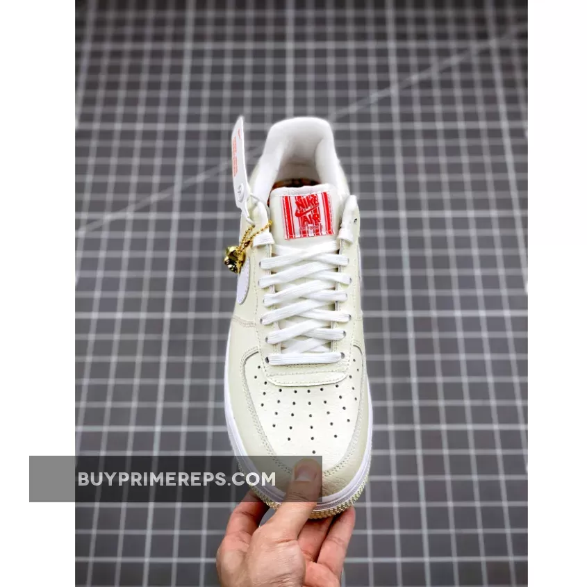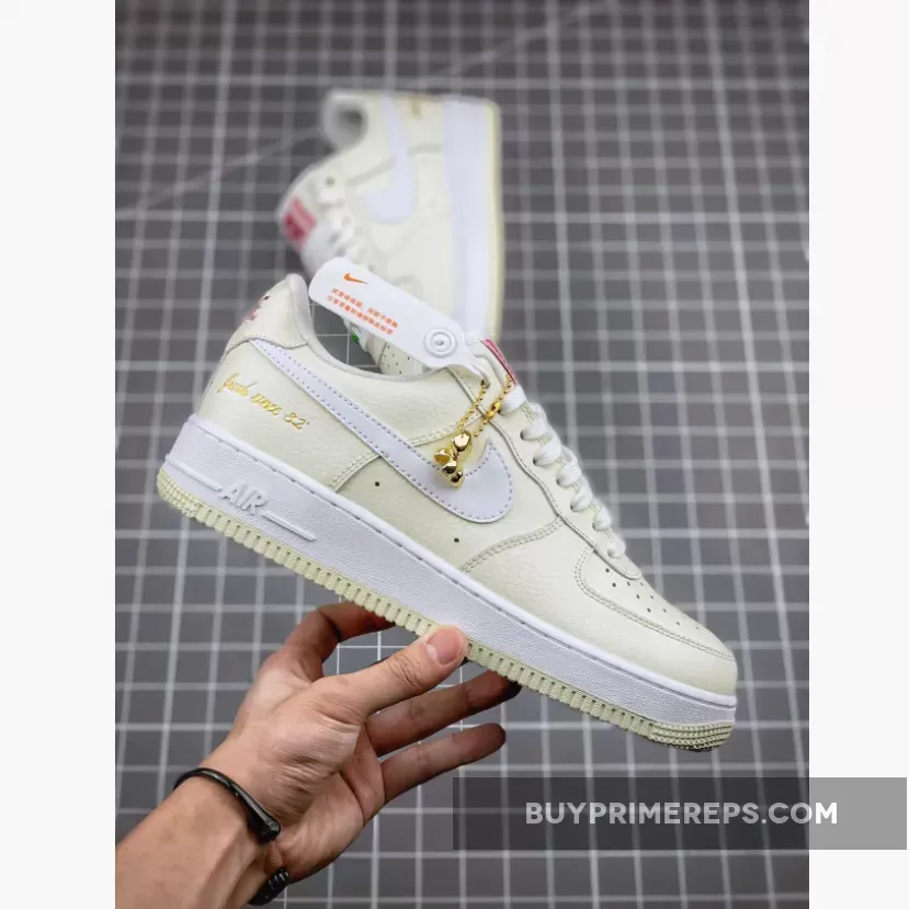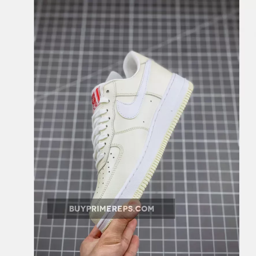 The Nike Air Force 1 Low Premium Popcorn features a delectable colorway inspired by the beloved treat. The upper is constructed with a luxurious tumbled leather in a creamy Coconut Milk hue, reminiscent of freshly popped popcorn. The Nike Swoosh logo on the sides and the sock liner add a contrasting touch in a lighter shade, resembling the buttery goodness that tops off a bag of popcorn.