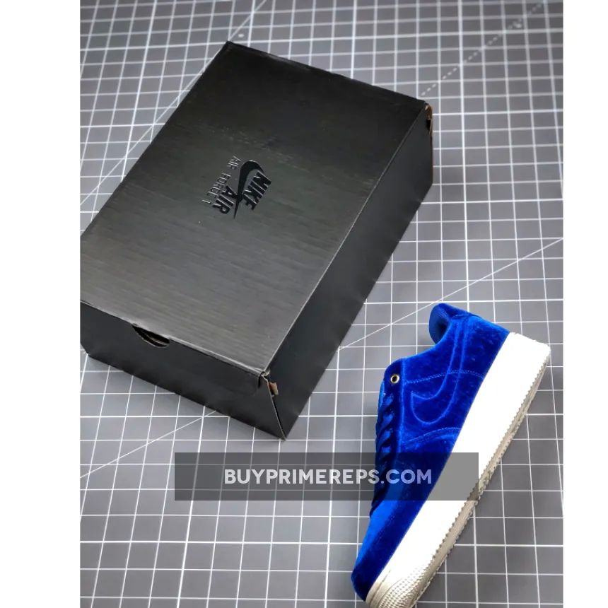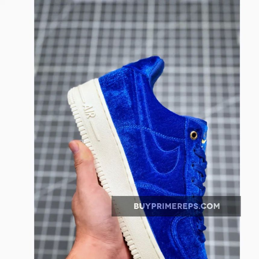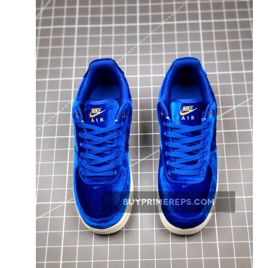 Introducing the Nike Air Force 1 Low Premium “Velour” in a stunning Blue Void/Sail-Metallic Gold colorway. This iconic sneaker has been given a luxurious upgrade with its premium velour uppers, adding a touch of elegance and sophistication to the classic silhouette.