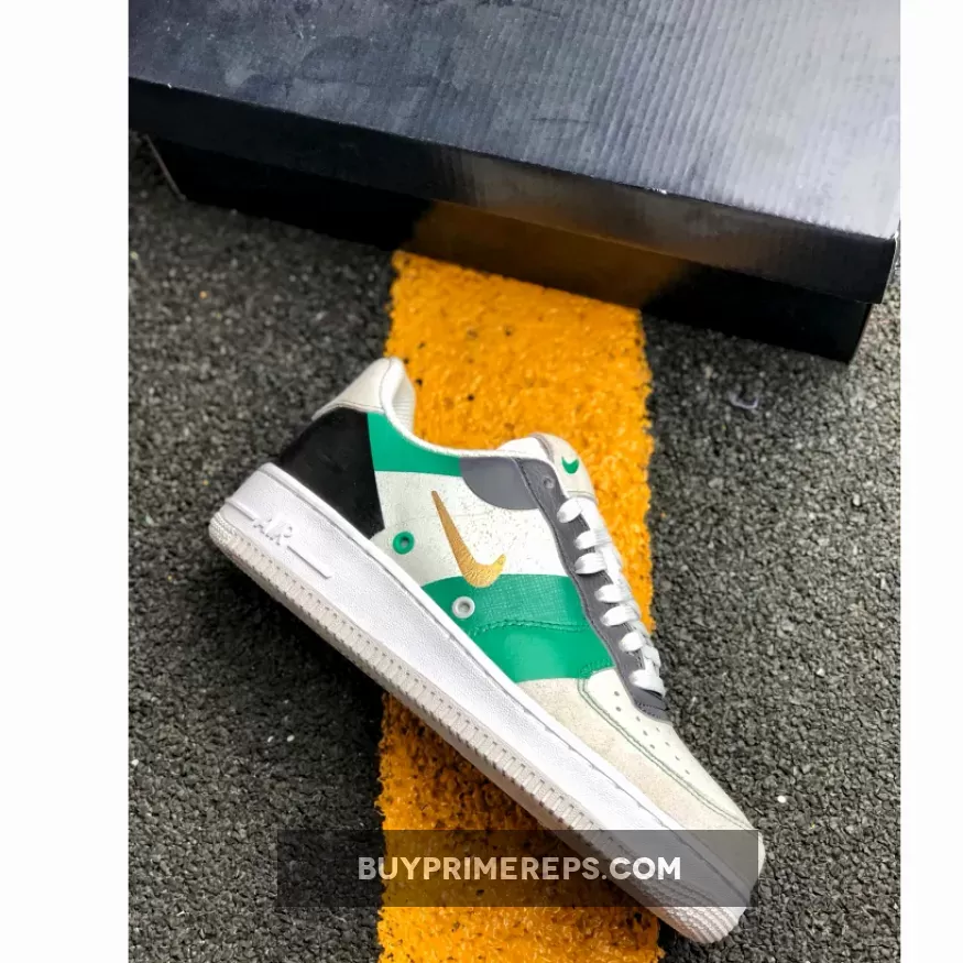 Introducing the Nike Air Force 1 White Green Black, a sneaker that stands out from the crowd with its unique design and nods to the world of tennis. While the Air Force 1 is a classic low-top basketball shoe, this particular iteration brings a sporty twist to the table, drawing inspiration from the hard court rather than the hardwood.