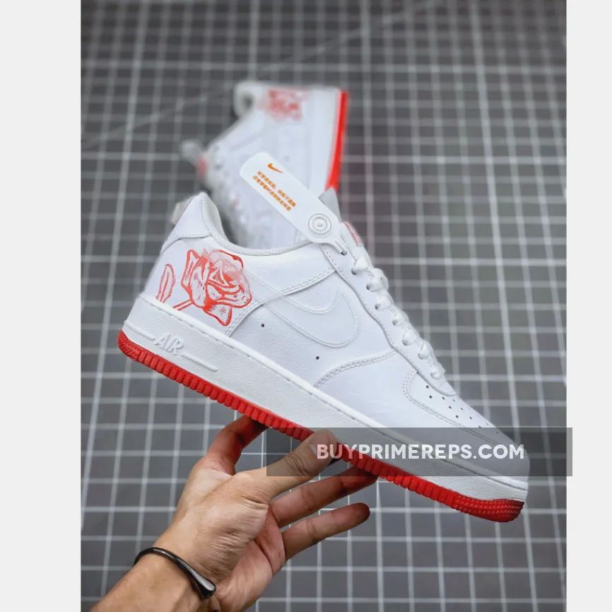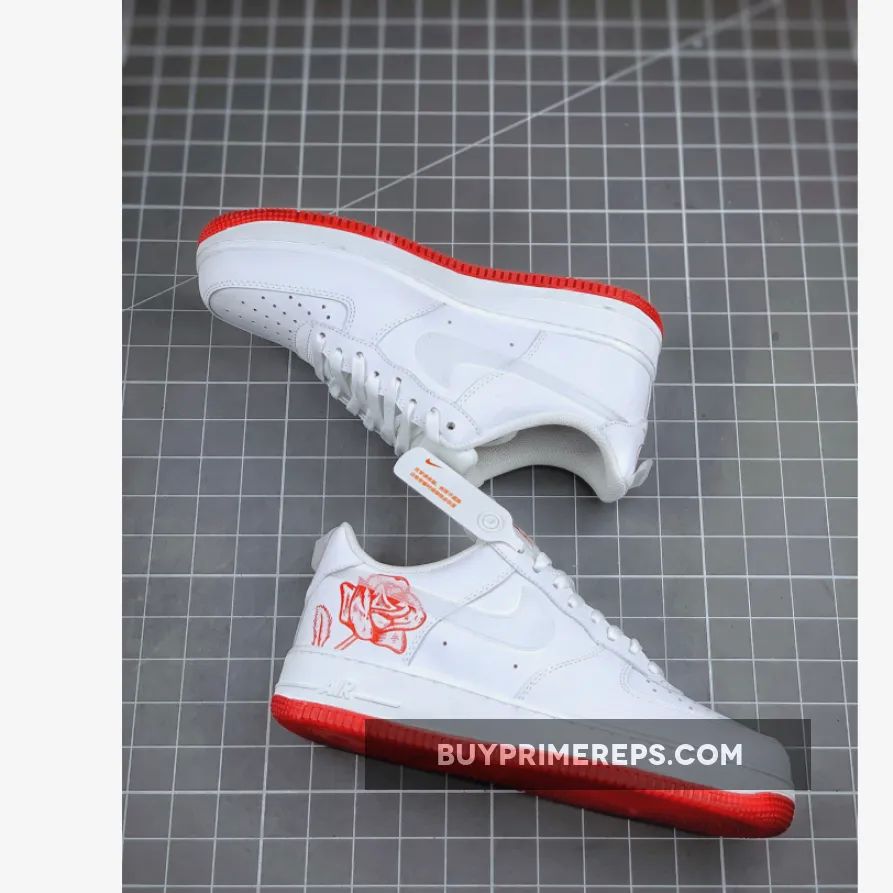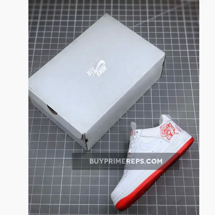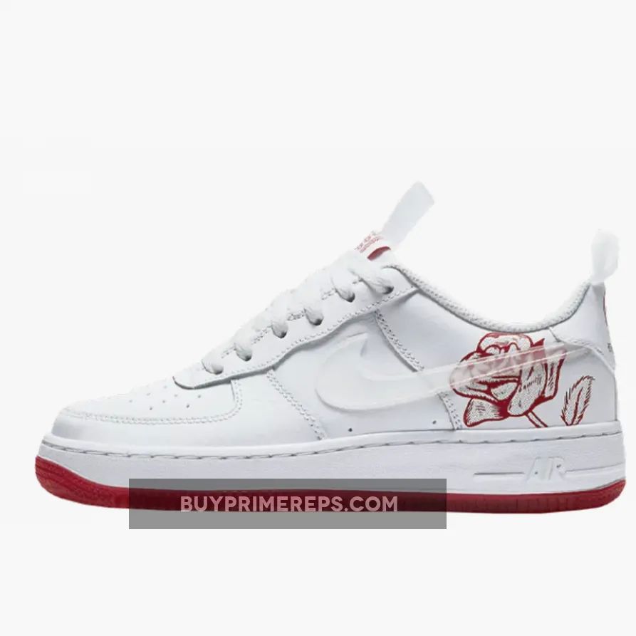 The Air Force 1 GS Rose White University Red features a clean and crisp white leather upper, providing a timeless and versatile look. However, what sets this iteration apart is the striking rose detailing on the sidewalls. The linear rose pattern adds a feminine and floral touch to the sneaker, making it stand out from the crowd.