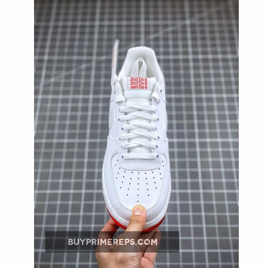 The Nike Air Force 1 GS Rose White University Red also incorporates branding elements throughout. The tongue features repeat “Just Do It” branding, adding a touch of Nike’s iconic slogan to the design.