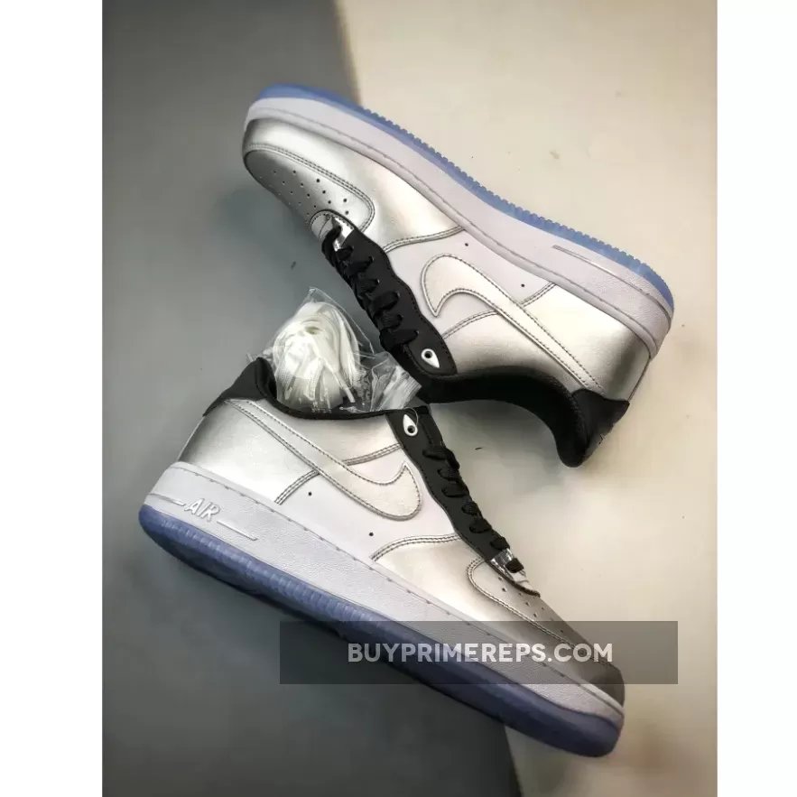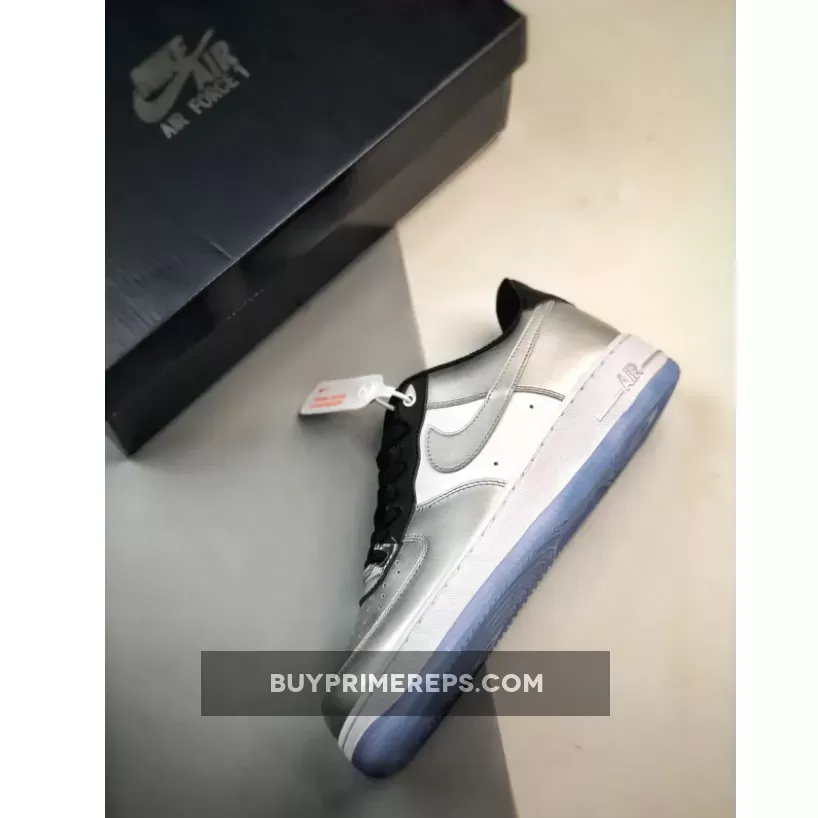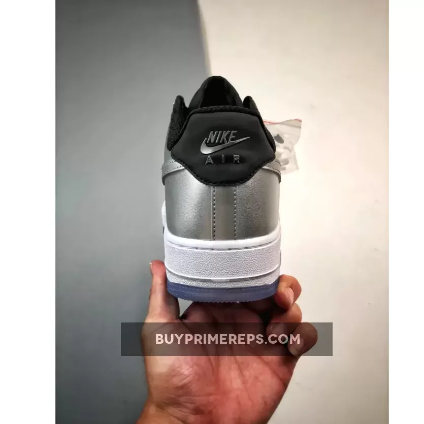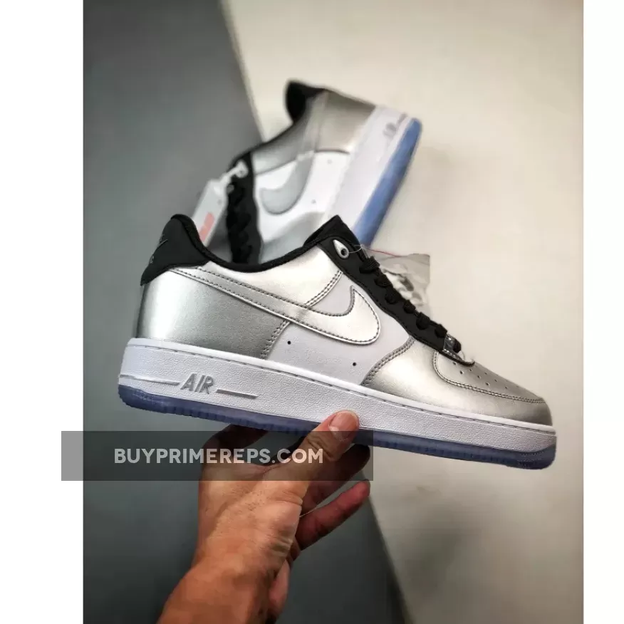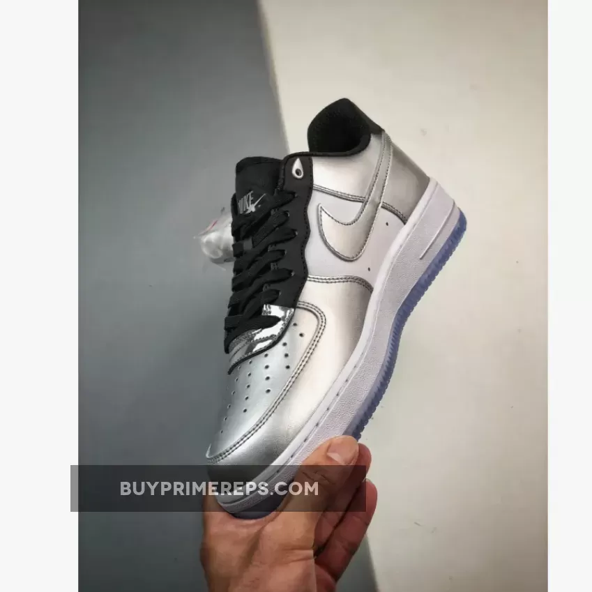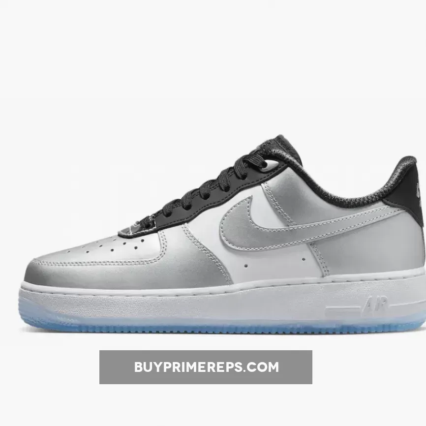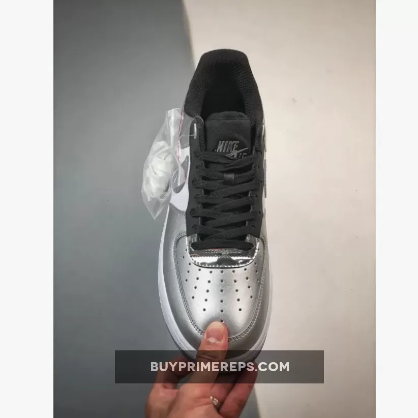 The Nike Air Force 1 Low “Chrome” comes in a sleek and eye-catching Metallic Silver/Metallic Silver-Black colorway. The upper of the shoe is made of leather, with the majority of it featuring a striking metallic silver finish. This gives the shoe a futuristic and bold look that is sure to turn heads.
