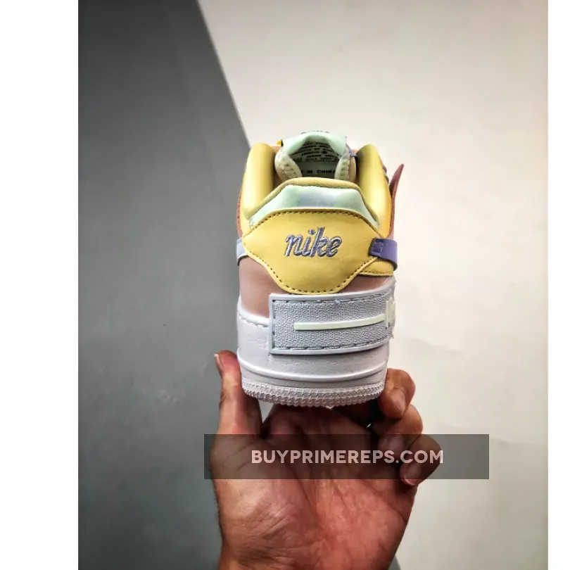 The Nike Air Force 1 Shadow silhouette is back with a fresh twist. This time, it’s all about pastel colors and a hint of lemon. The smooth leather upper of this AF1 is predominantly in a soft and delicate Light Soft Pink hue, giving it a feminine touch. But that’s not all – the real fun begins with the double overlays.