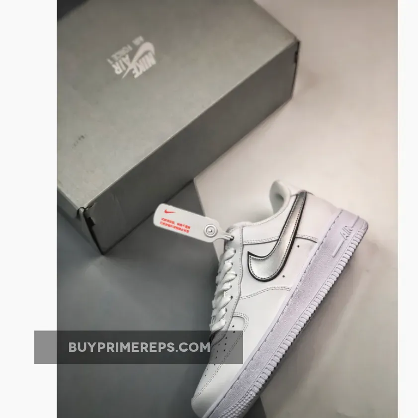 At first glance, the Air Force 1 Metallic Silver may seem like a simple white sneaker. But upon closer inspection, you’ll notice the subtle yet eye-catching details that set it apart. The shoe features a clean white leather upper that serves as the perfect canvas for the metallic silver accents. The Nike Swoosh branding on the sides is done in a striking metallic silver color, outlined with black stitching. This small touch adds a touch of elegance and gives the shoe a unique and distinctive look.
