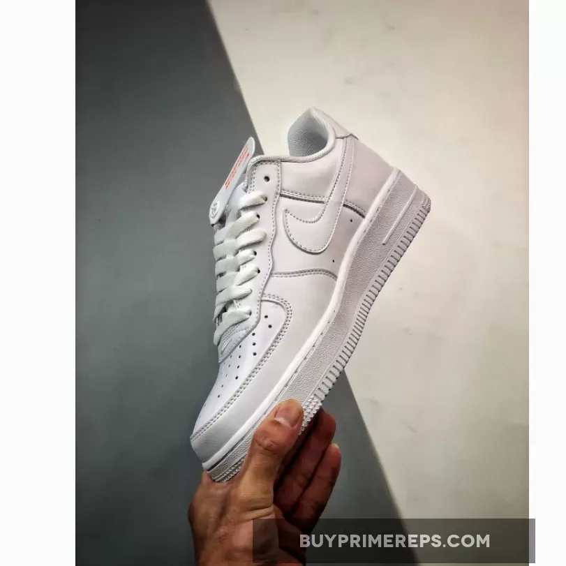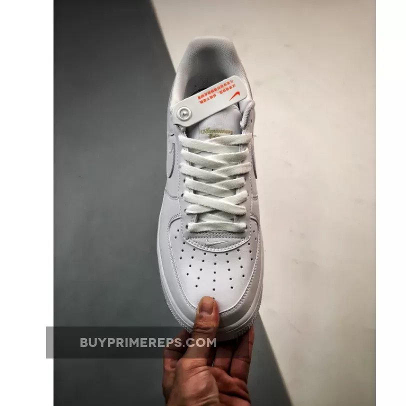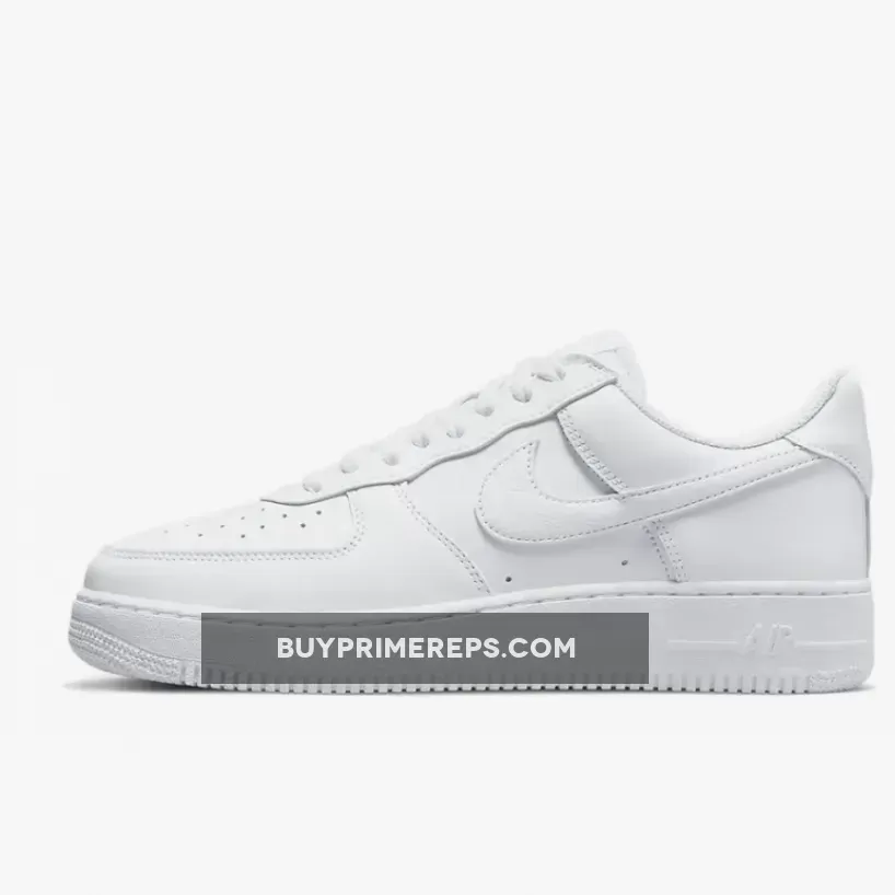 This special edition Air Force 1 features an all-white leather construction, giving it a clean and fresh look. The upper is made of supple leather that feels soft and luxurious to the touch. The Swooshes on the sides of the shoe have a slightly more pebbled texture, adding a subtle touch of visual interest.