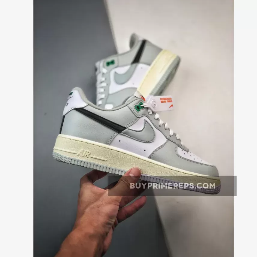 In addition to the split Swooshes, the Air Force 1 Low Split “Light Silver” also boasts “Stadium Green” accents on the heel tab branding, eyelets, and insole branding. These subtle pops of color add depth and visual interest to the overall design. The shoe is completed with a vintage-looking sail midsole and a split “Light Silver” and “Stadium Green” rubber outsole, providing durability and traction.