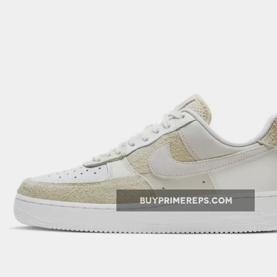 But what truly sets the Nike Air Force 1 Beach apart is its stunning color scheme. The upper is constructed with a combination of buttery smooth and tumbled leather, breathable mesh, and shaggy suede overlays. The sail, summit white, and beige tones create a beautiful contrast that perfectly captures the beach vibe.