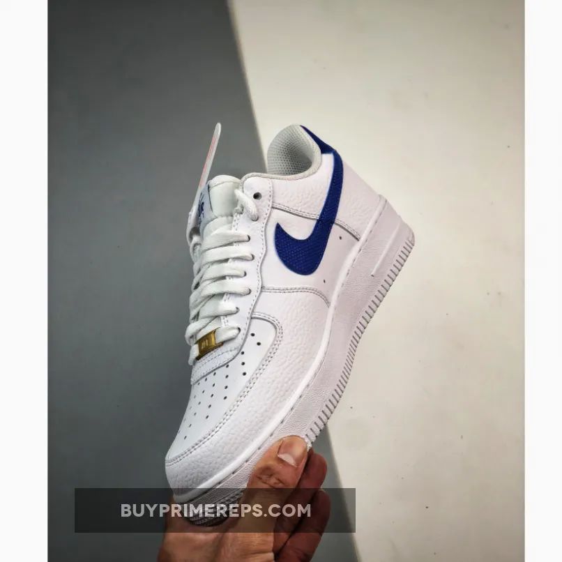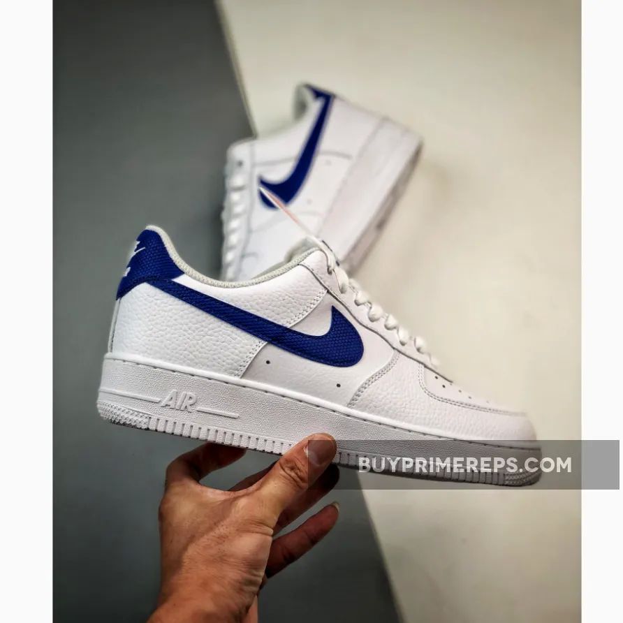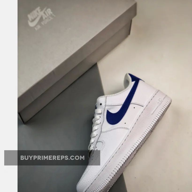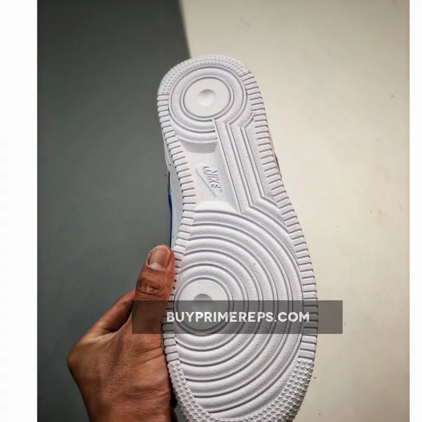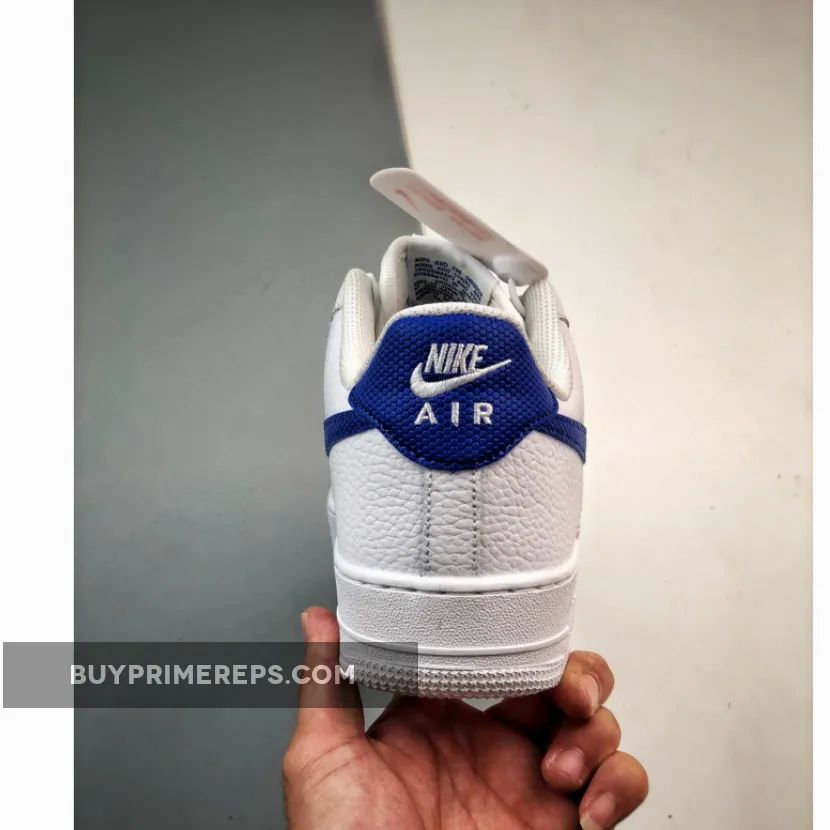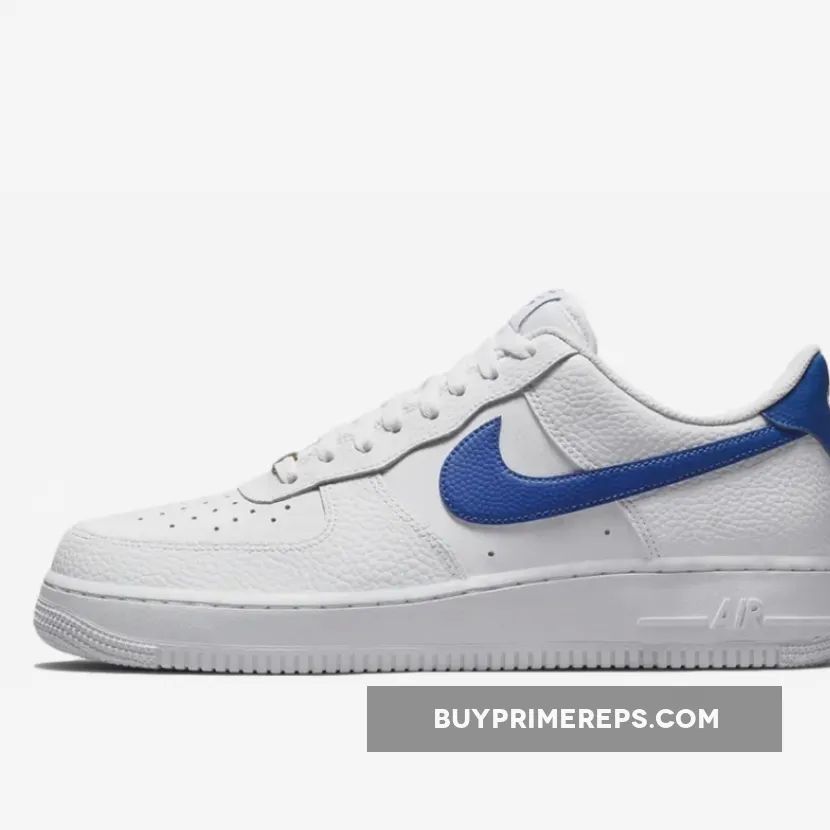 The upper of the Air Force 1 Low White Royal is constructed with a combination of full-grain leather overlays and smooth leather panels. The full-grain leather wraps around the mudguard and heel panels, providing a premium look and feel. The smooth leather is used on the toe box and quarter panels, adding to the overall aesthetic appeal of the shoe.