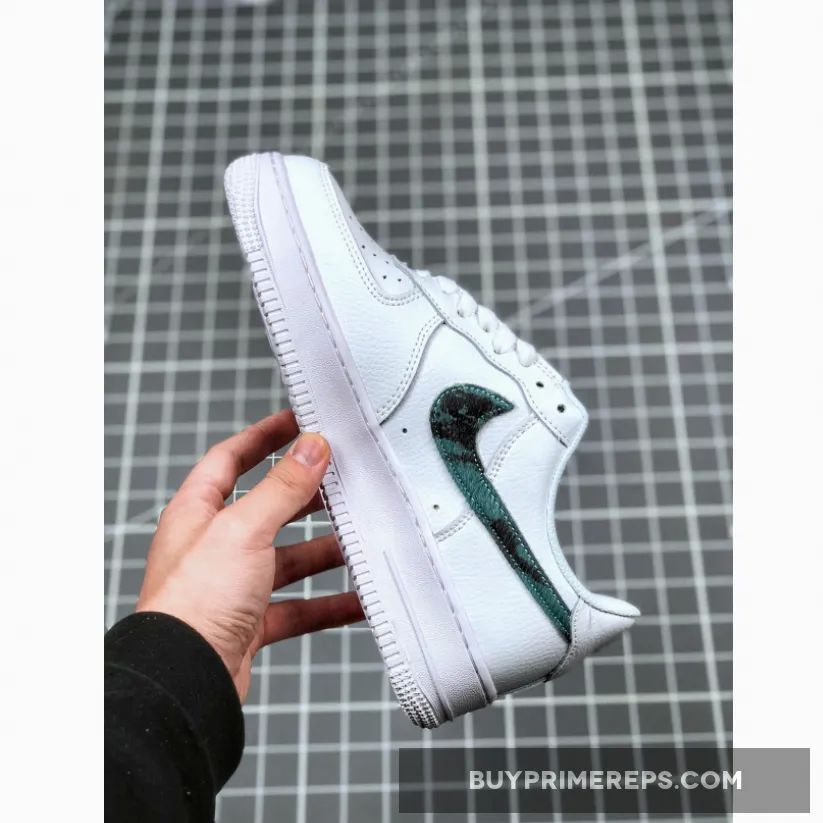 The upper of the Air Force 1 LV8 Snake is constructed from smooth leather, giving it a luxurious look and feel. To ensure breathability, perforations are added to the toe box, allowing air to escape and keeping your feet cool and comfortable throughout the day. The heel is reinforced to provide added structure and support.
