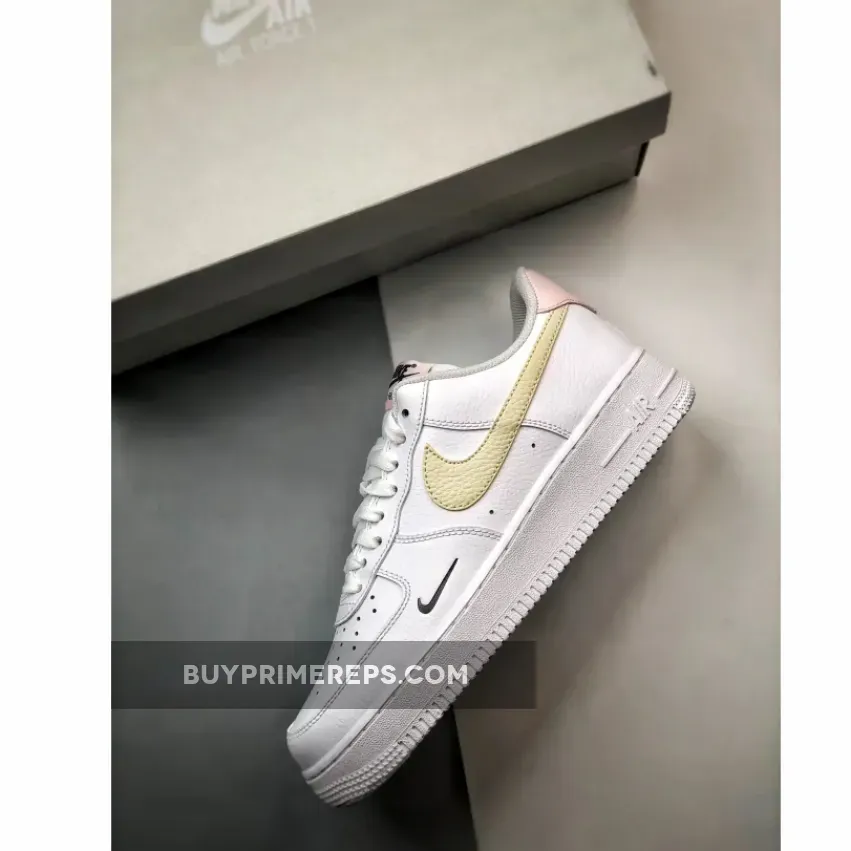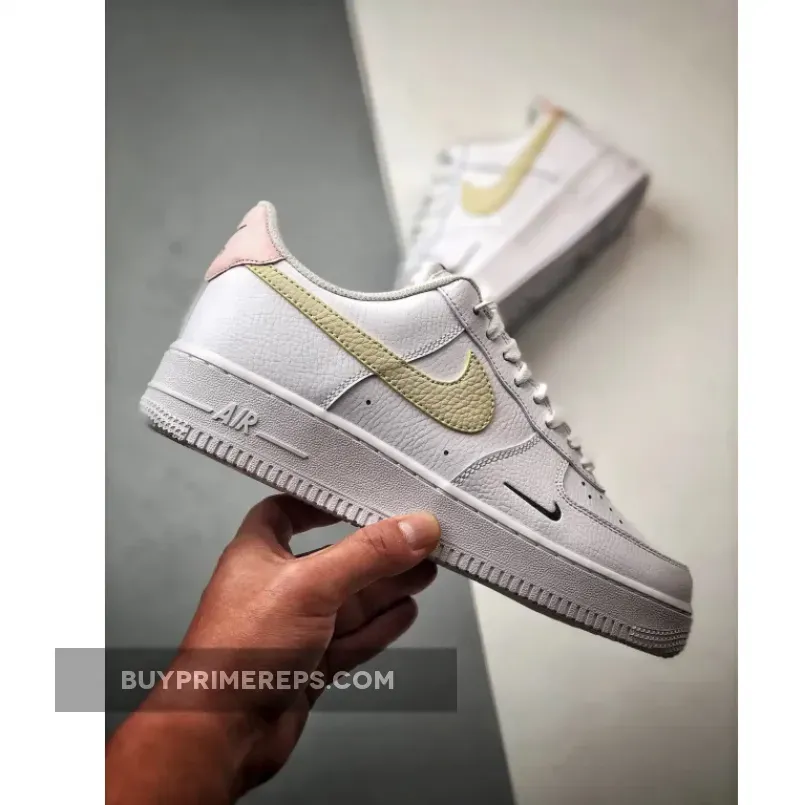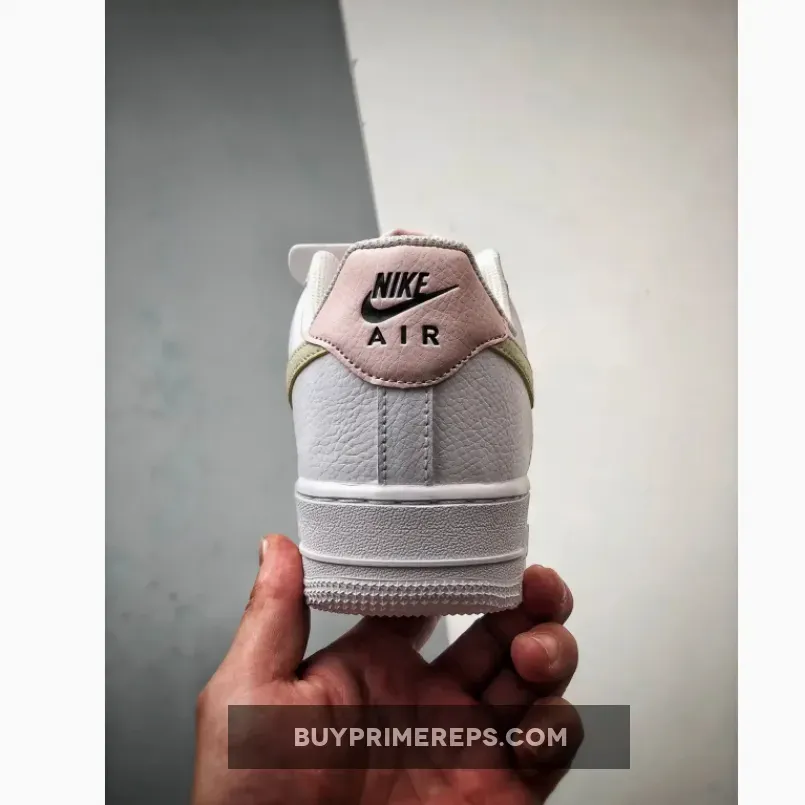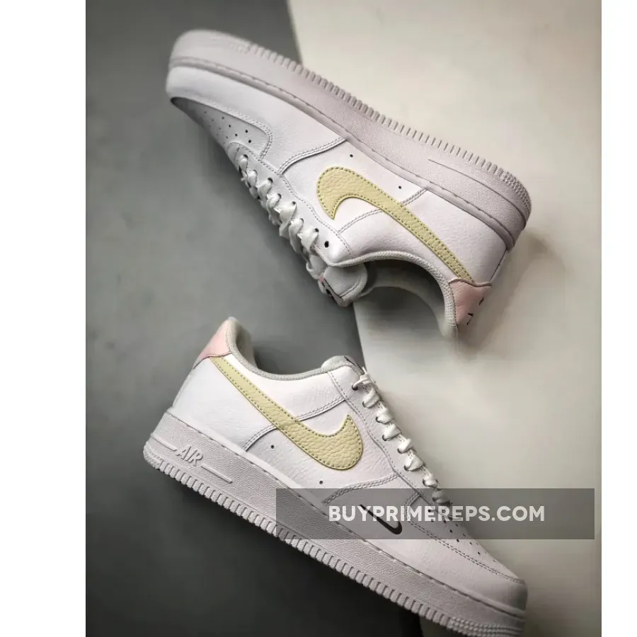 The sandy tan color is used for the iconic Nike Swoosh logo, which is prominently displayed on the side of the shoe. This adds a subtle pop of color to the overall design, while still maintaining the clean and minimalistic aesthetic of the Air Force 1. The black color is used for the miniature Swoosh logos at the forefoot and heel, adding a touch of contrast and depth to the shoe. And finally, the soft pink color is used on the tongue label and heel-tab, adding a feminine touch to the design and suggesting an Easter-friendly selection.