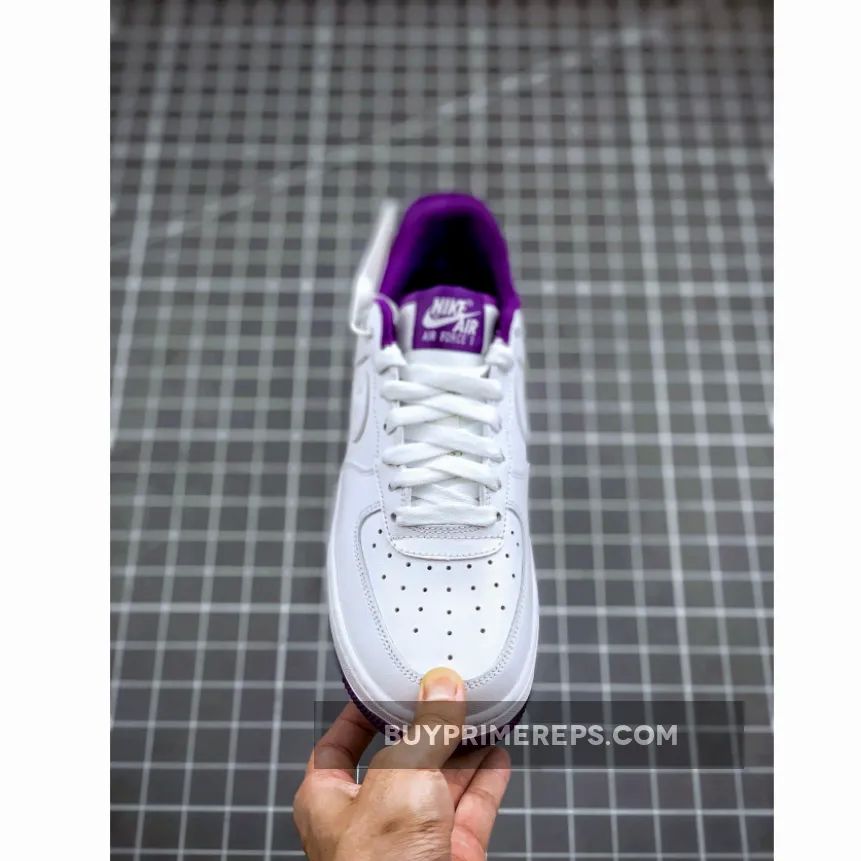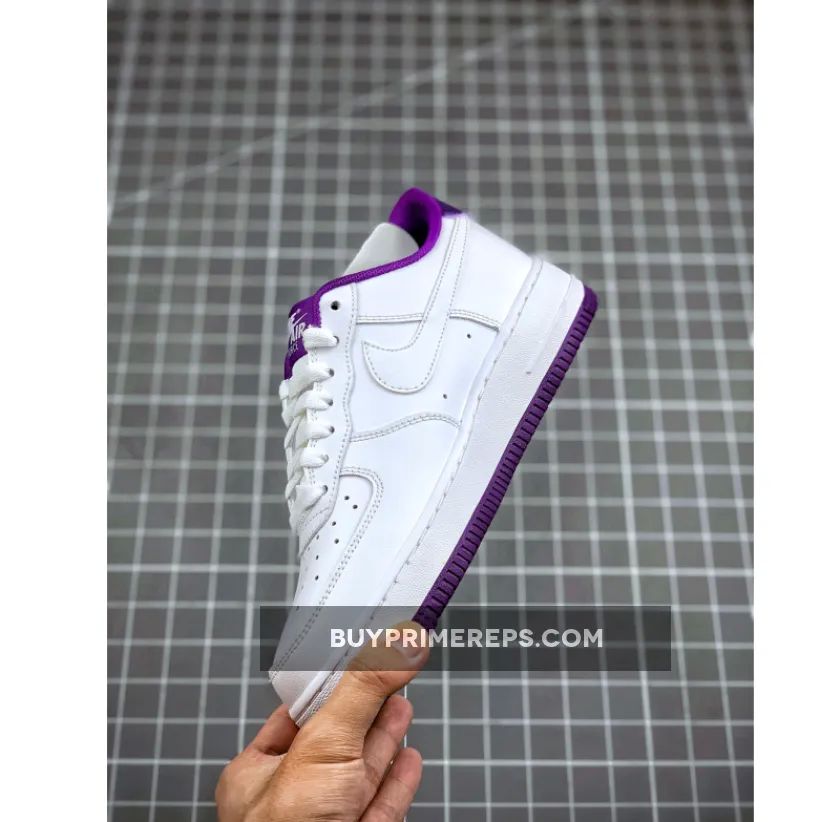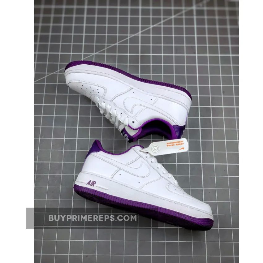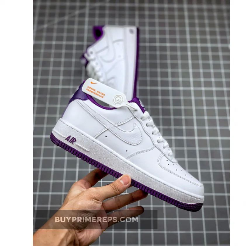 Introducing the Nike Air Force 1 Low Voltage Purple CJ1380-100, a clean and stylish shoe that is sure to elevate any sneaker collection. This release takes inspiration from the iconic OG “Triple White” colorway of the 80s but adds a twist with vibrant Voltage Purple accents, making it a must-have for sneakerheads old and new.