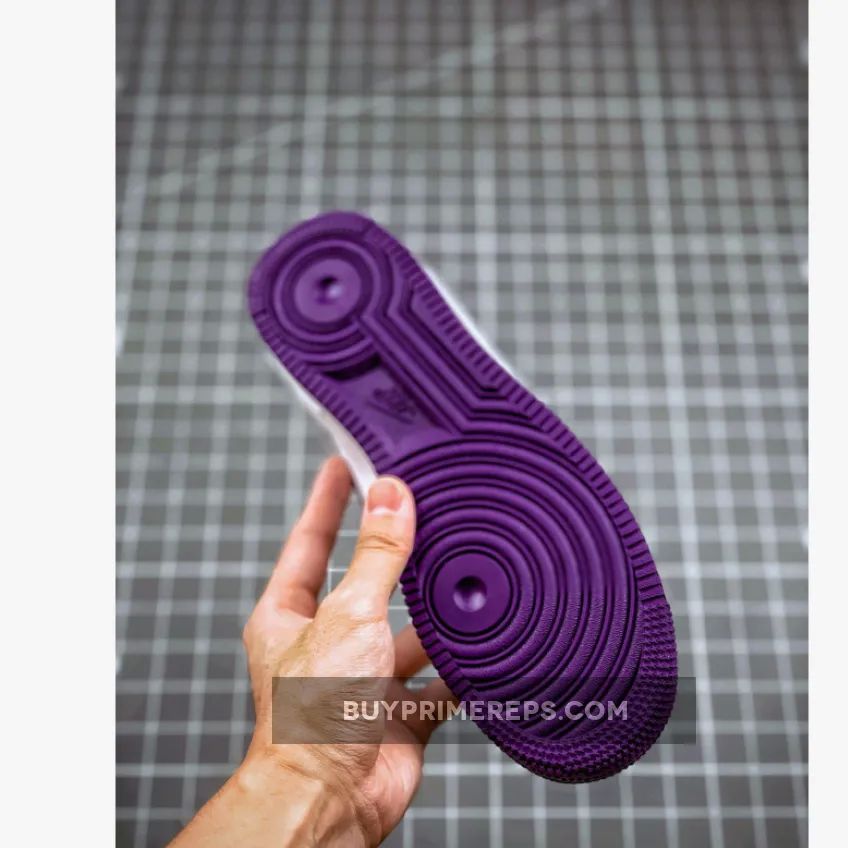 The standout feature of the Air Force 1 Low Voltage Purple is the bold pops of Voltage Purple that accentuate the shoe. These vibrant purple accents can be found on the sockliner and heel, providing a striking contrast against the clean white upper. This color combination gives the shoe a KITH-inspired aesthetic that is both eye-catching and on-trend.