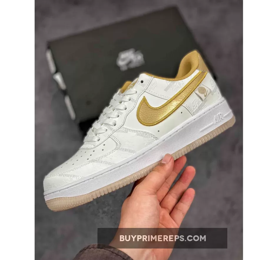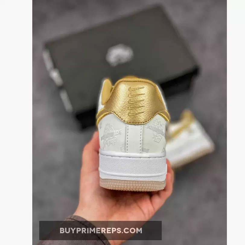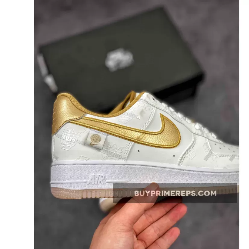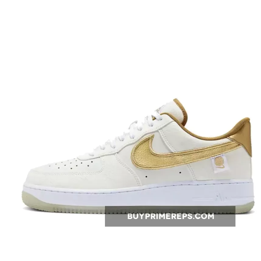 Attention to detail is evident in the perforated toe box and padded ankles, which pay homage to the true spirit of the AF1. Not only does the shoe exude style, but it also offers exceptional comfort with its chunky midsole concealing a full-length Nike Air unit. This ensures a cushioned and supportive experience, making the Air Force 1 07 LV8 Worldwide White Metallic Gold a go-to choice for everyday wear.