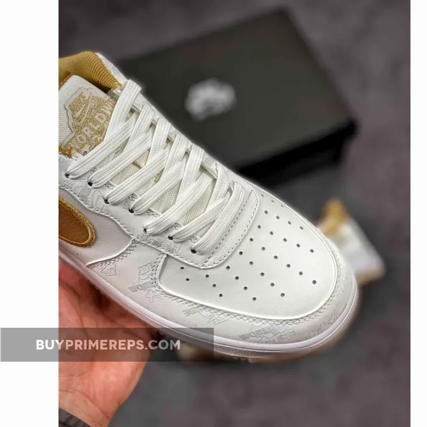 In summary, the Nike Air Force 1 07 LV8 Worldwide White Metallic Gold is a must-have sneaker for enthusiasts and collectors alike. Its timeless design, premium materials, and comfortable construction make it a versatile choice for any occasion. Whether you’re a fan of the AF1’s rich heritage or simply appreciate a well-crafted shoe, the Air Force 1 07 LV8 Worldwide White Metallic Gold is sure to exceed your expectations. Don’t miss out on adding this iconic silhouette to your collection.