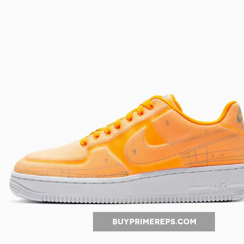 The Nike Air Force 1 Low “Schematic” Orange is a bold and eye-catching sneaker that is sure to turn heads wherever you go. This iteration of the iconic Air Force 1 features a full Laser Orange upper that is coated with a translucent textile material. This unique design element gives the shoe a futuristic and modern look, while also allowing for breathability and comfort.