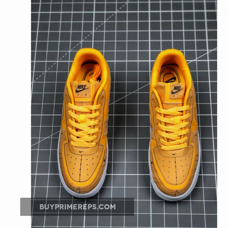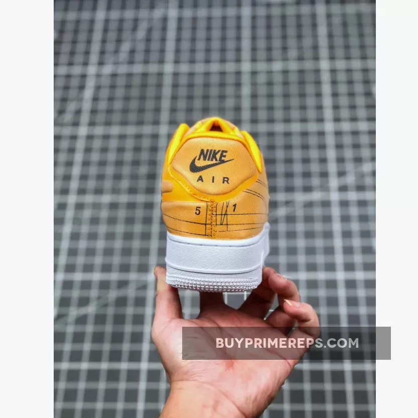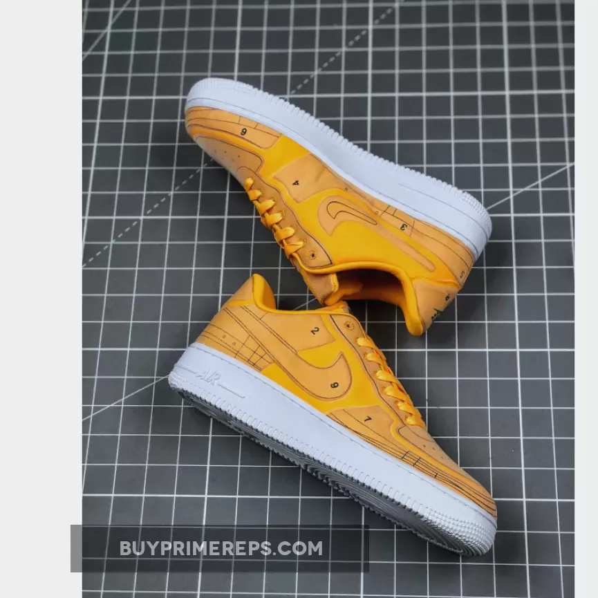 One of the standout features of the Nike Air Force 1 Low “Schematic” Orange is the Blueprints detailing throughout the shoe. These intricate designs can be seen on the upper as well as on the insoles, adding a touch of creativity and uniqueness to the overall aesthetic. The Blueprints pay homage to the original sketch of the shoe, adding a sense of history and heritage to this contemporary design.