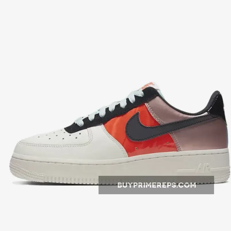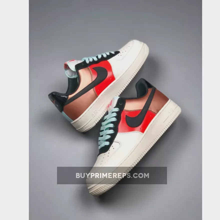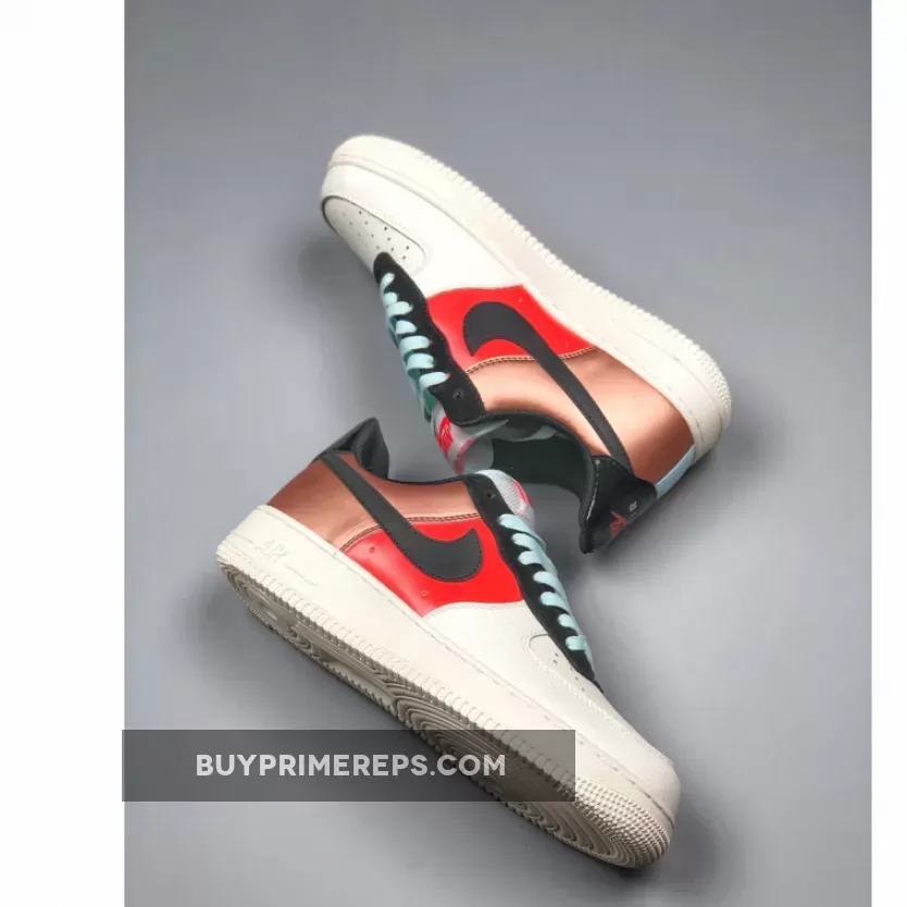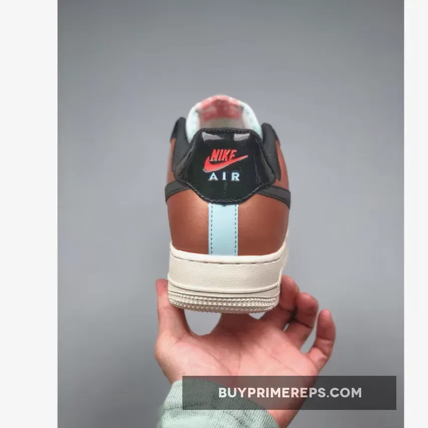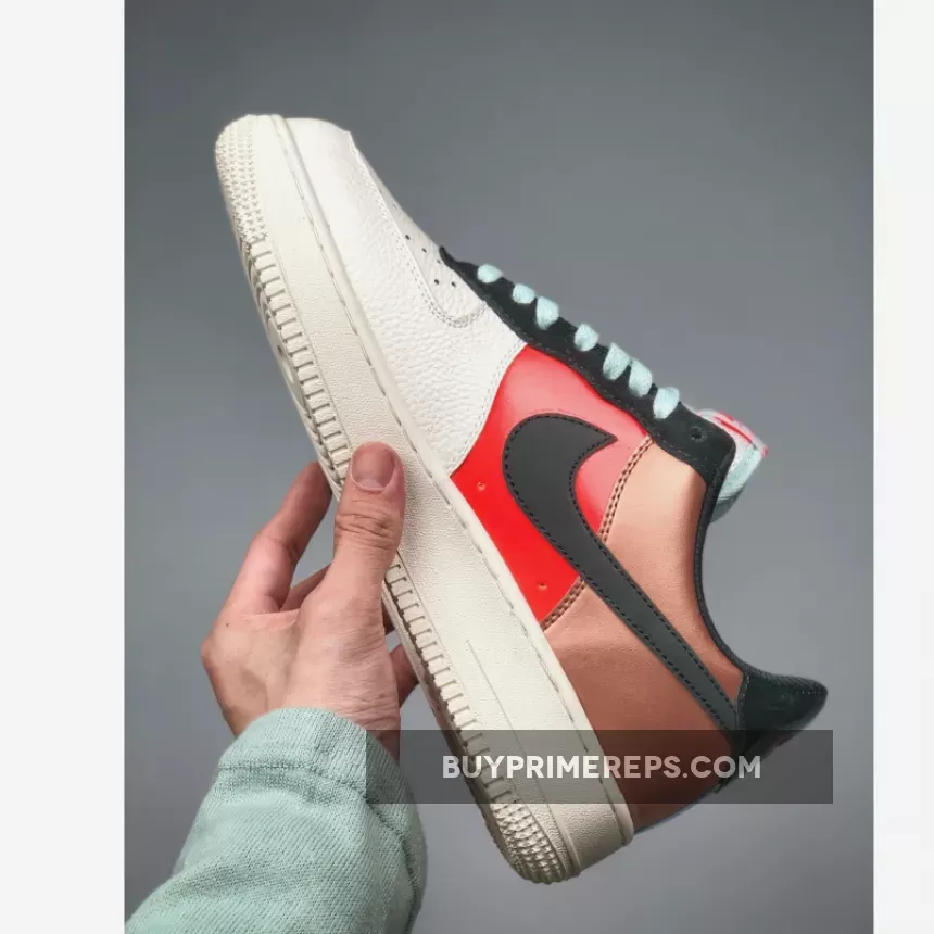 One of the standout features of the Nike Air Force 1 Low White Multi is its split design. The heel of the shoe is crafted from a rich, earthy brown leather that gives it a warm and luxurious feel. This is complemented by the midfoot, which is made from a glossy patent leather that adds a sleek and stylish touch. The toe box, on the other hand, is a light cream color that provides a clean and fresh contrast to the rest of the shoe.