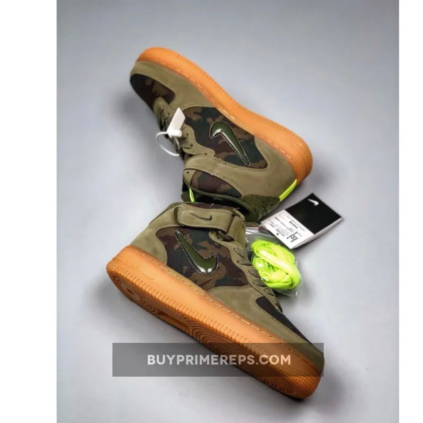 The Air Force 1 Jewel Mid Olive Gum features a military-inspired khaki color scheme, making it the perfect sneaker for the autumn months. The subtle camo graphics on the side panels and toebox add a touch of ruggedness to the overall design. To ensure a secure fit, the shoe is equipped with a rugged strap that works in harmony with the traditional lacing system.