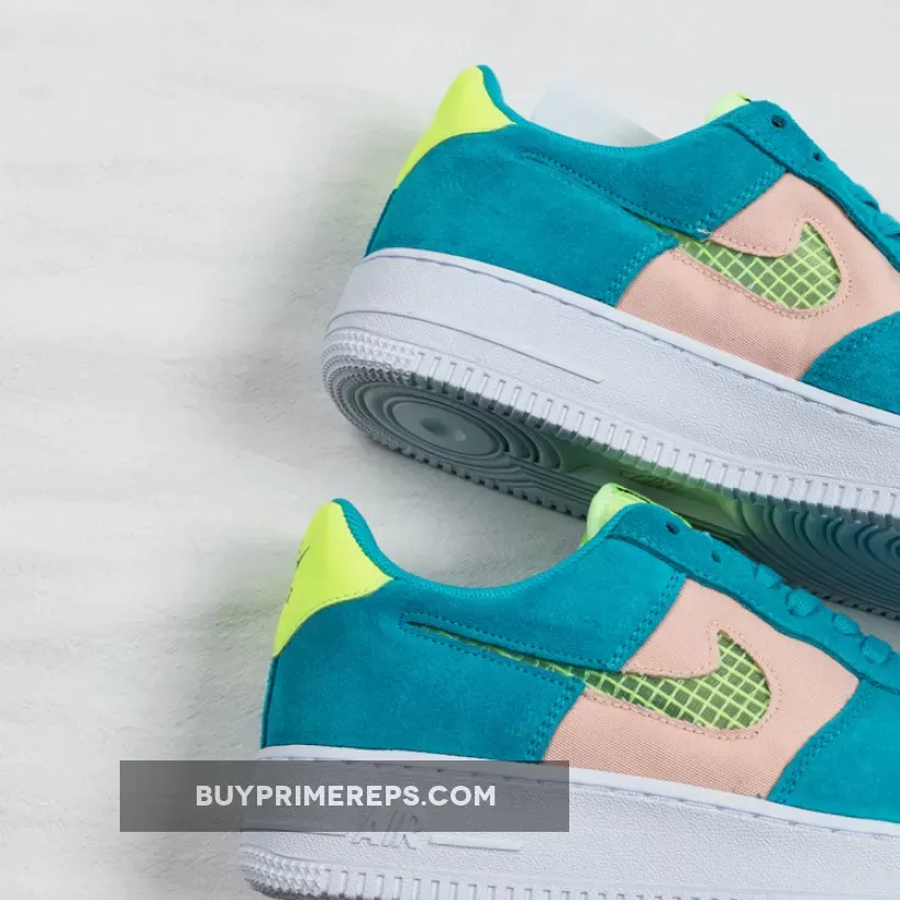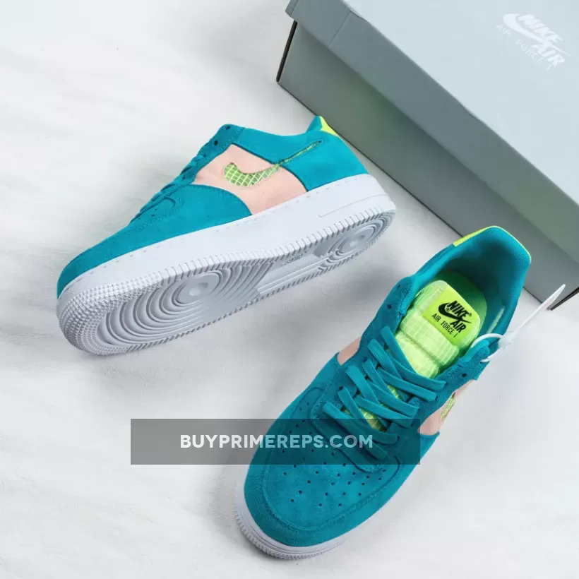 In terms of construction, the Nike Air Force 1 LV8 GS Oracle Aqua features a combination of materials. The upper is made of high-quality leather, ensuring durability and comfort. The suede accents on the shoe add a luxurious touch and enhance the overall aesthetic. The shoe also features Nike’s iconic swoosh logo, which extends towards the heel for a bold and distinctive look.