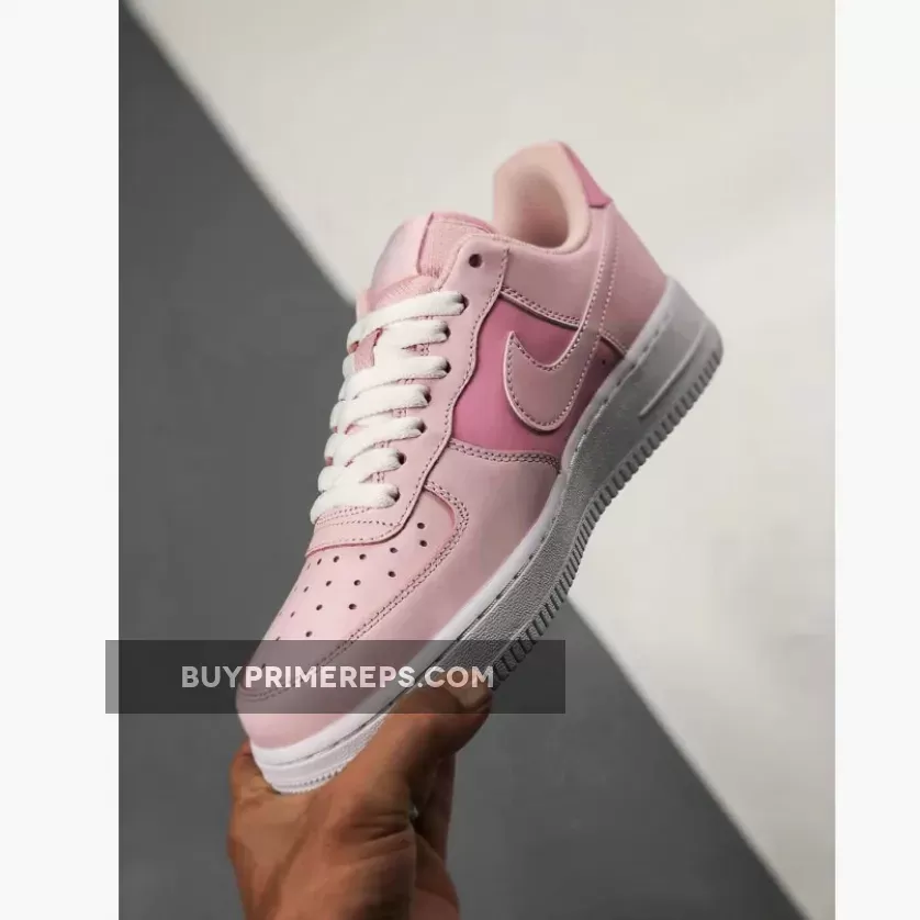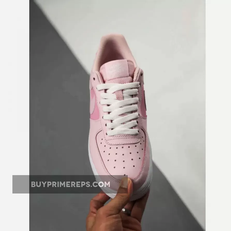 The Nike Air Force 1 Pink Foam White features a beautiful two-tone Pink Foam leather upper that is sure to bring a cute and stylish look to any outfit. Whether you prefer simple and minimalistic outfits or bold and daring styles, these sneakers will elevate your fashion game with a pop of pink. The classic Nike Swoosh can be seen on the sidewalls, while the Nike Air branding is present on both the heel and tongue. The white midsole not only adds a clean and sleek touch to the overall design but also houses the comfortable Air-Sole cushioning that Nike is known for.