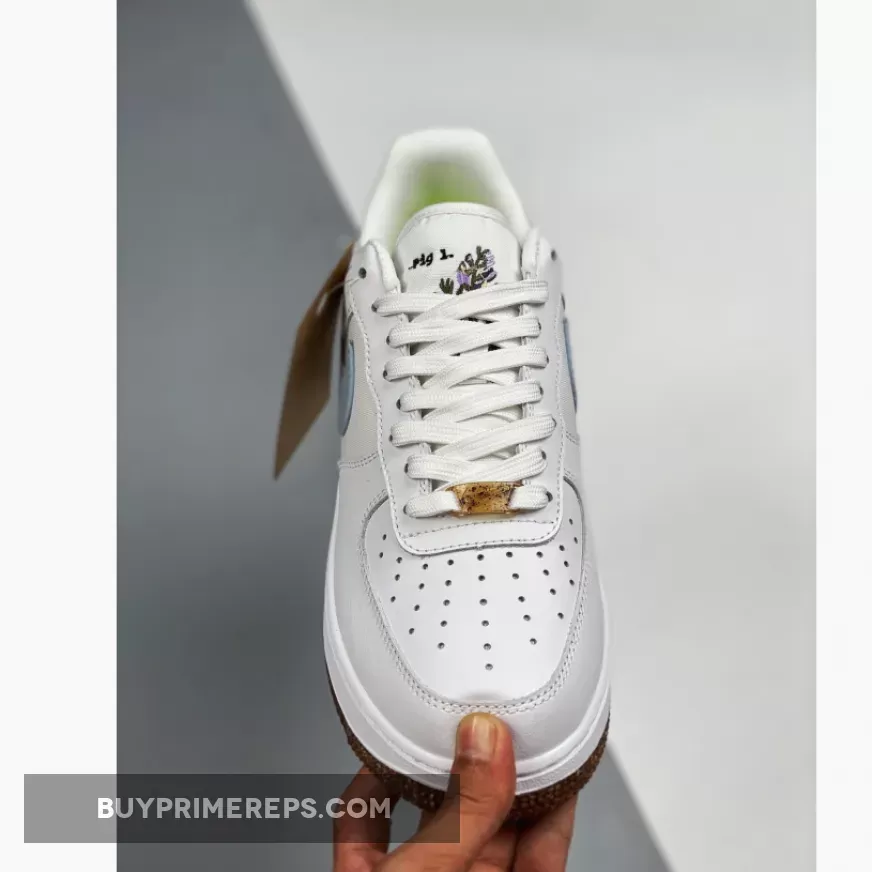 The Air Force 1 Pomegranate Indigo features a clean and crisp white colorway, with canvas Nike Swoosh logos in a light blue tone. While this may seem like a typical color combination, there is more to this sneaker than meets the eye. The design is inspired by the Pomegranate Indigo plant, also known as True Indigo. Scientific facts about the plant are marked on the heel tabs, adding a unique touch to the shoe.