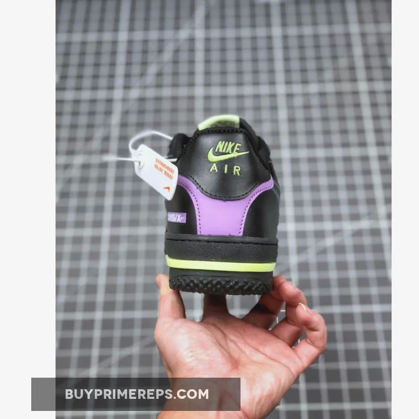 Adding a pop of color to the design, the heel features a splash of light purple, which is contrasted with accents of lime green on the heel of the midsole and on the tongue. These vibrant details give the shoe a unique and eye-catching look, setting it apart from other Air Force 1 models.