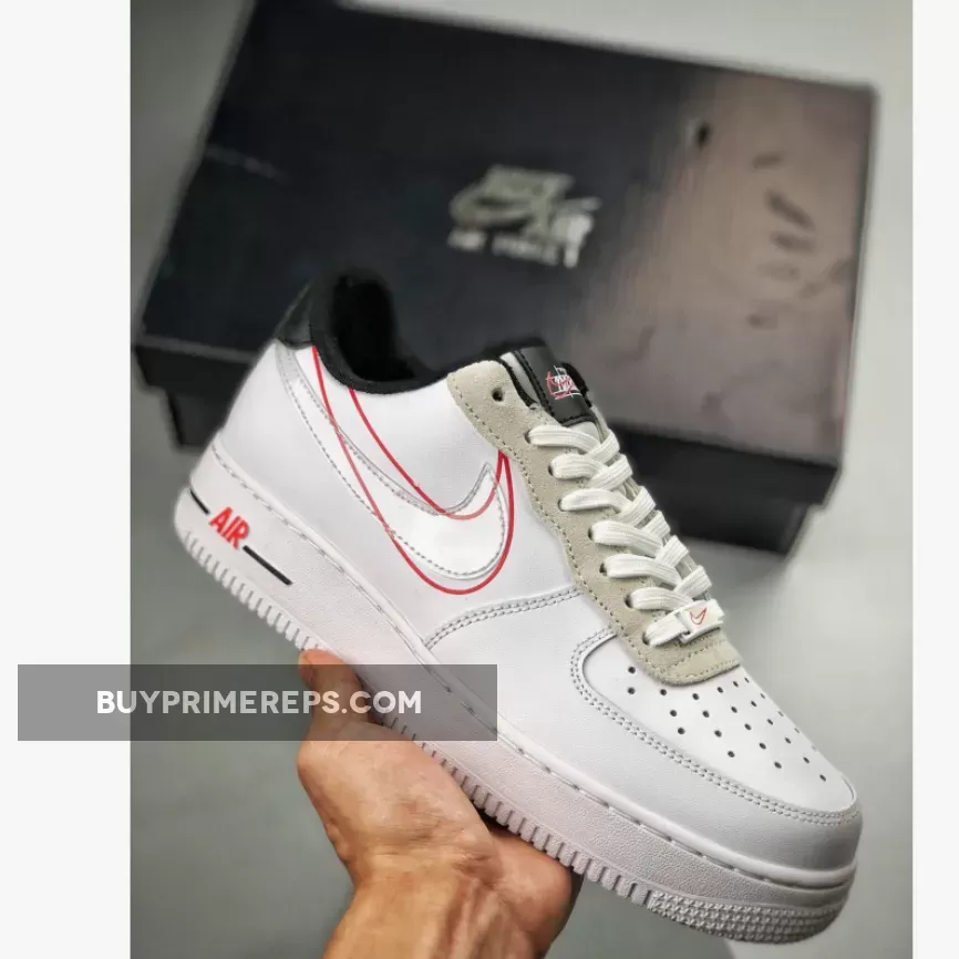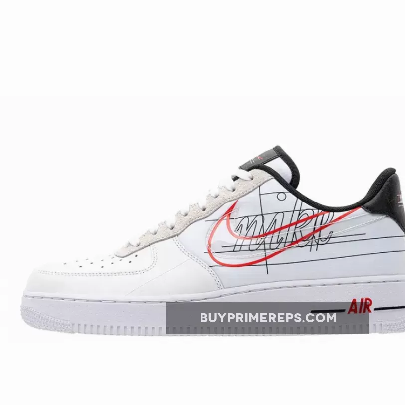 The Air Force 1 Script Swoosh Pack White features a classic ‘Triple White’ colorway, with a white leather upper that serves as a clean canvas for the logo details. The standout feature of this shoe is the hand-drawn Swoosh logo in red that stretches across the lateral and medial sides. This logo is accompanied by the original “Nike” text, giving a nod to the brand’s history before the adoption of the Futura font. Design lines add further visual interest to the shoe.