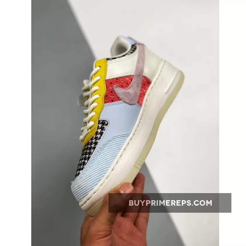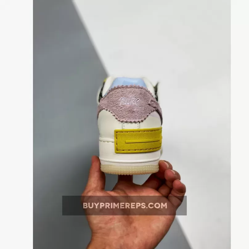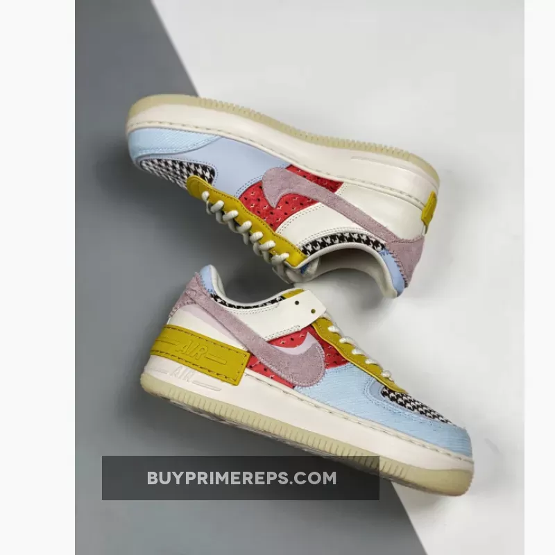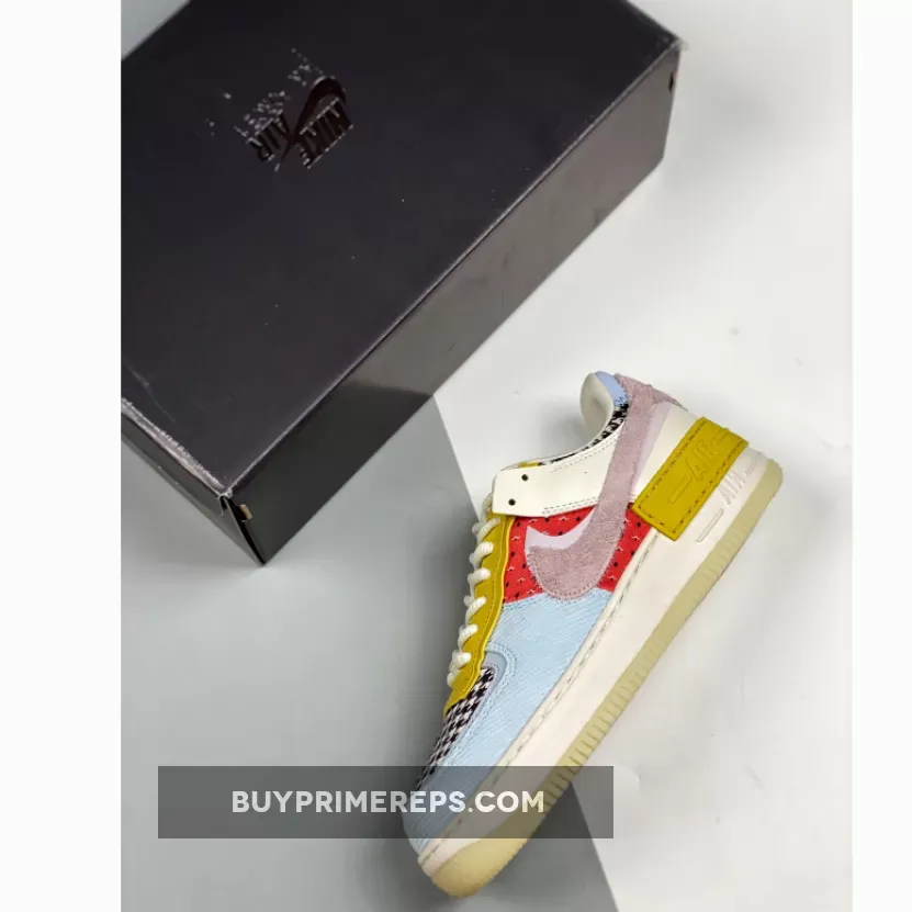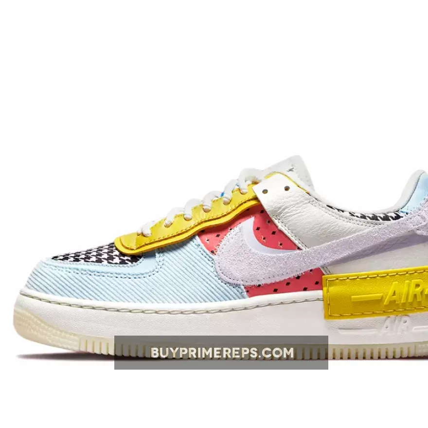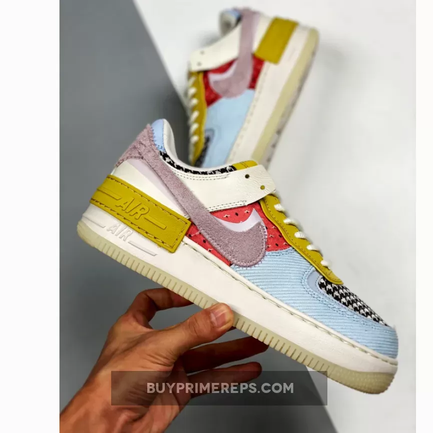 The Air Force 1 Shadow is known for its double-layered aesthetic, and this Yellow Multi edition is no exception. The shoe features overlapping layers on the upper, giving it a dynamic and layered appearance. This not only adds visual interest but also enhances the durability and support of the shoe.