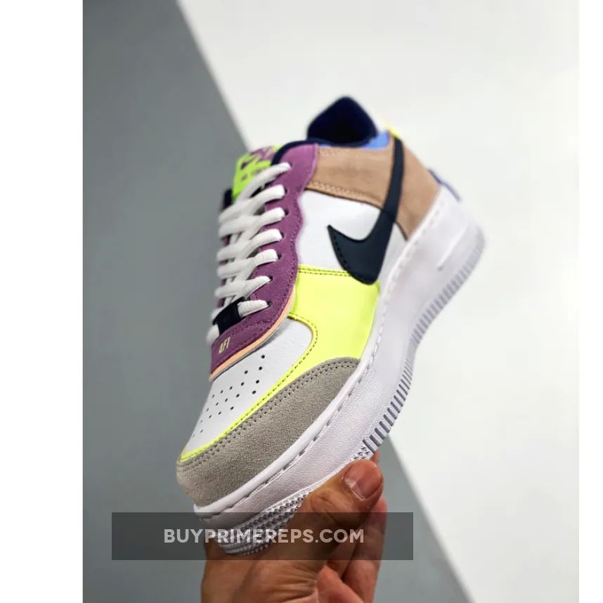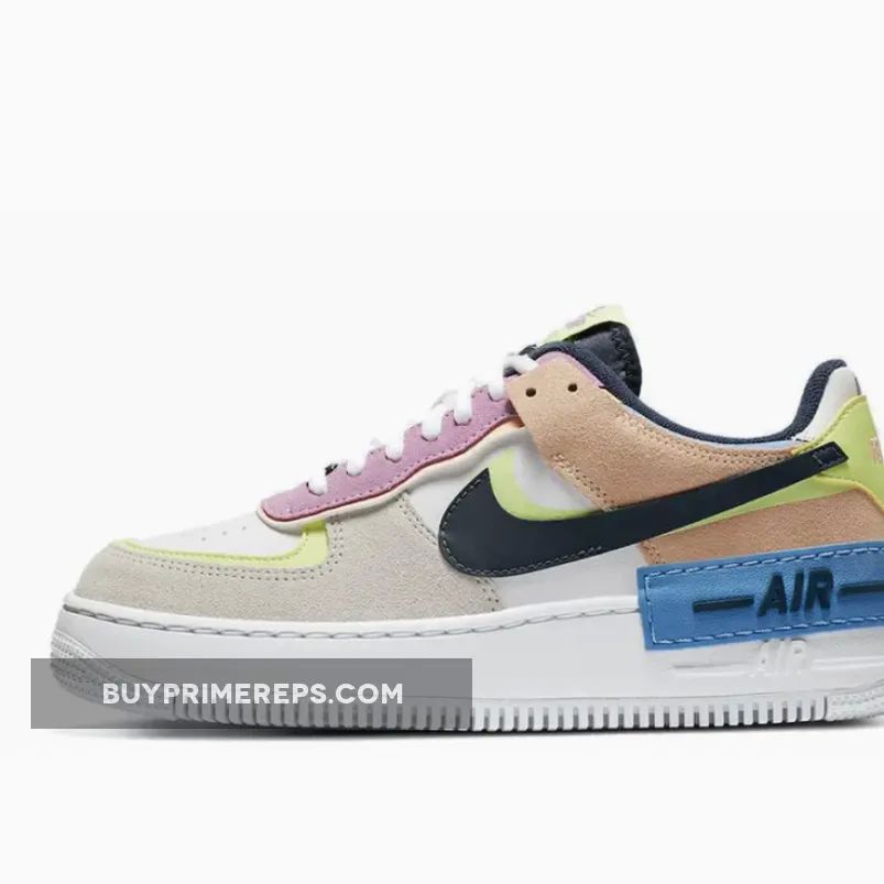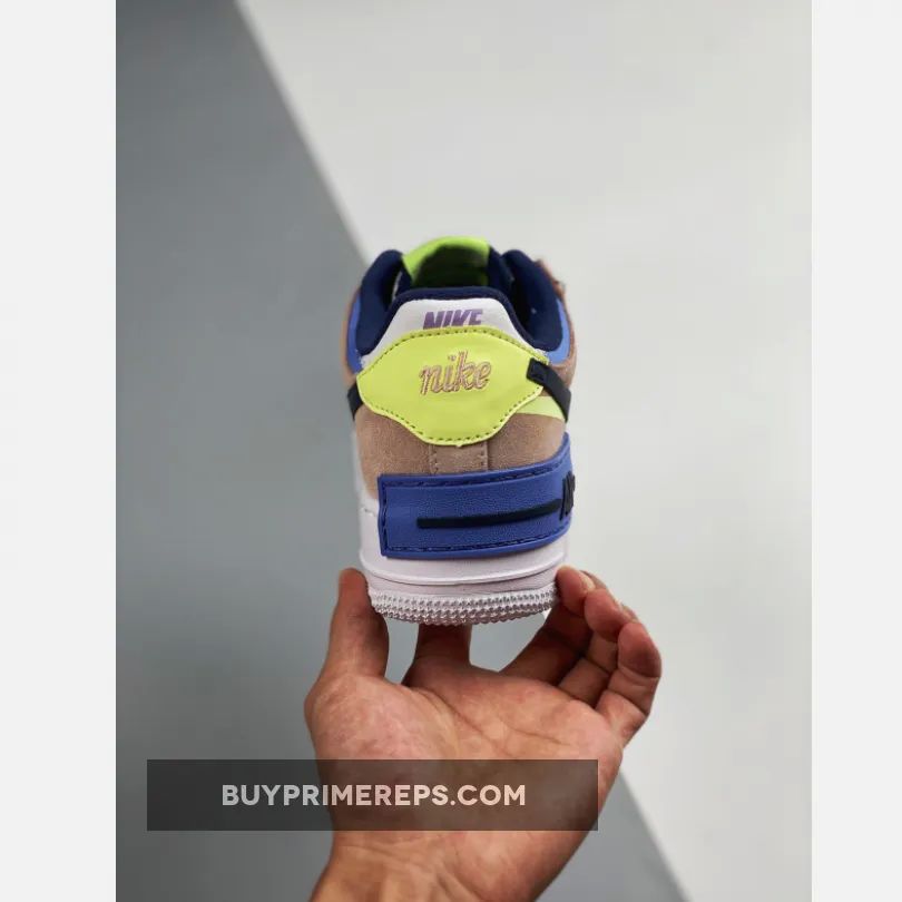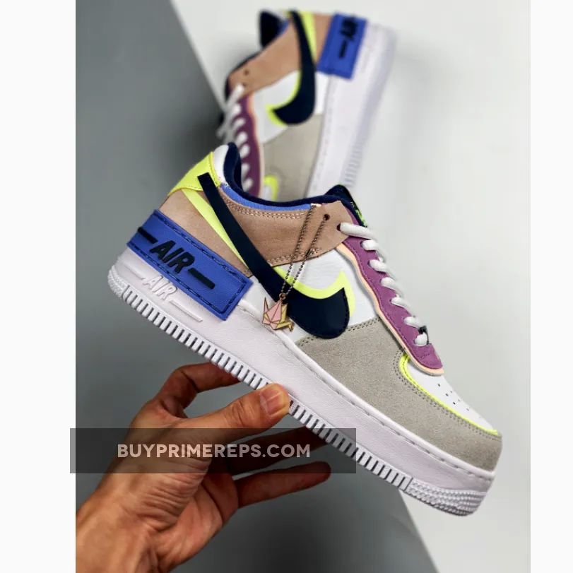 The Nike Air Force 1 Shadow Photon Dust/Royal Pulse/Barely Volt is not only a fashionable sneaker but also boasts excellent performance features. The layered upper design adds depth and texture to the shoe, while the padded collar and low-cut profile offer maximum comfort and support. The perforation holes on the toe box provide breathability, allowing air to circulate within the shoe.