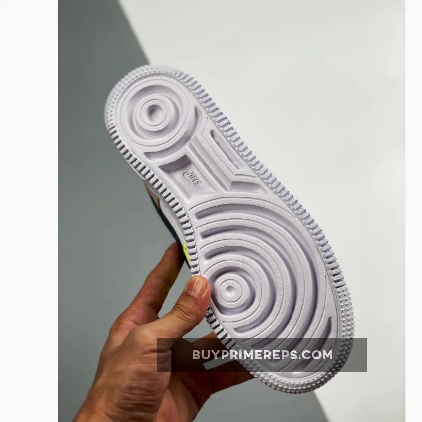 Additional details can be found along the tongue and ankle, where faded purple and orange hues add a subtle yet eye-catching element. The stacked midsole tooling is presented in Royal Pulse, complementing the vibrant accents seen throughout the shoe. The iconic “NIKE AIR” branding, “AF1” logo, and Swoosh logos on the shoe feature contrasting shades of the aforementioned colors, further enhancing the visual appeal.