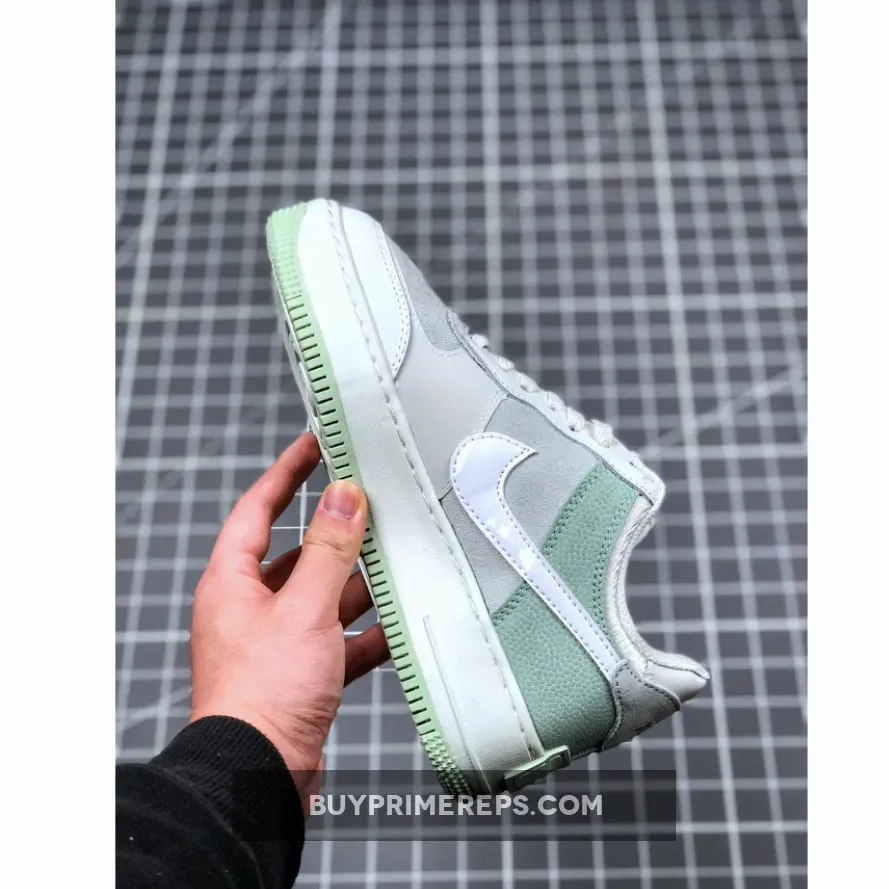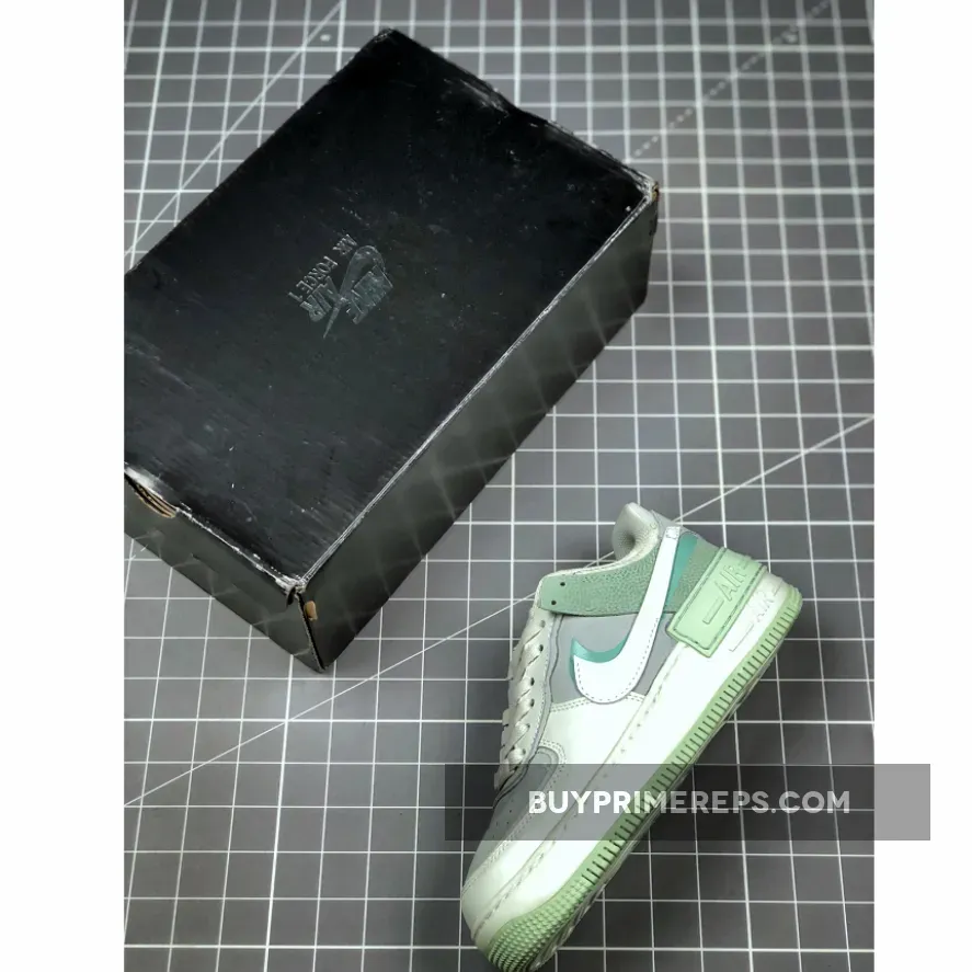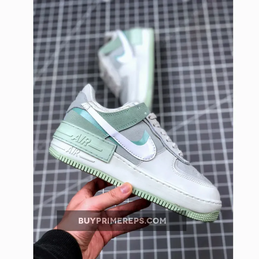 Crafted with attention to detail, the Air Force 1 Shadow Pistachio Frost features a combination of basketball pebbled leather, smooth leather, suede, and mesh materials. This blend not only provides durability but also gives the shoe a premium look and feel. The upper is designed with a layered effect, reminiscent of shadows, adding dimension and depth to the overall design.