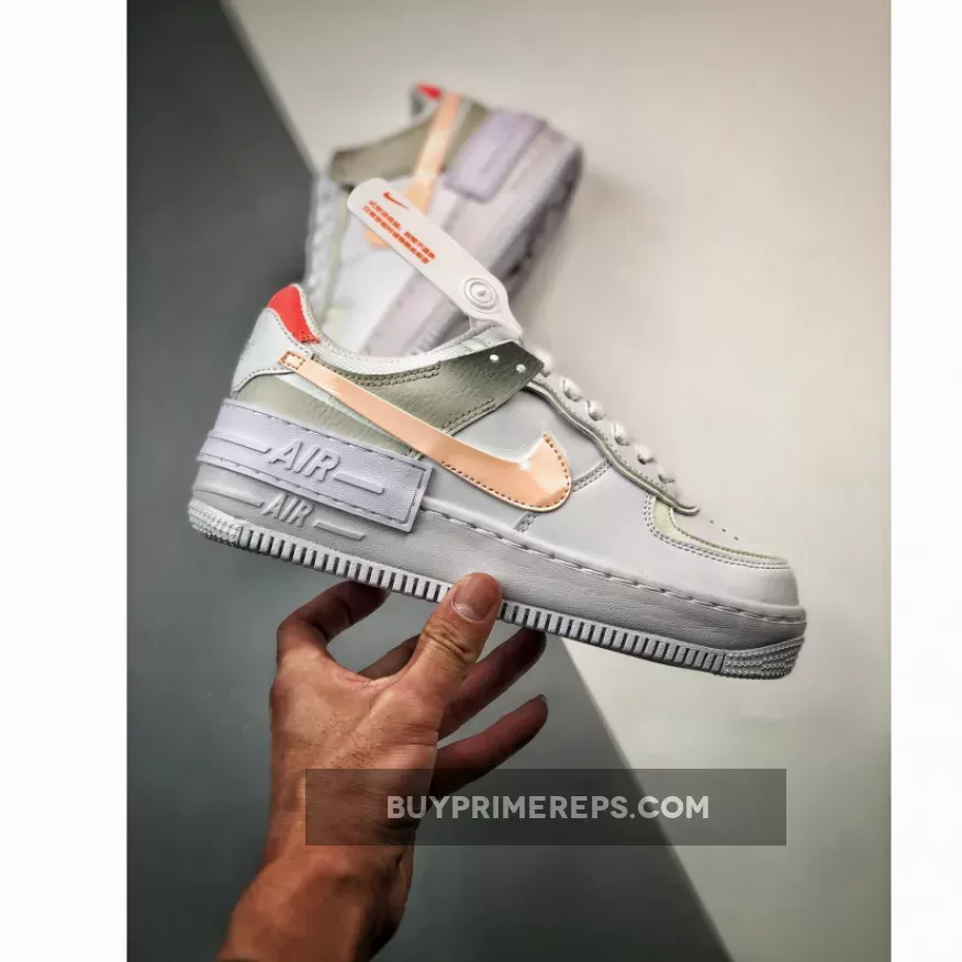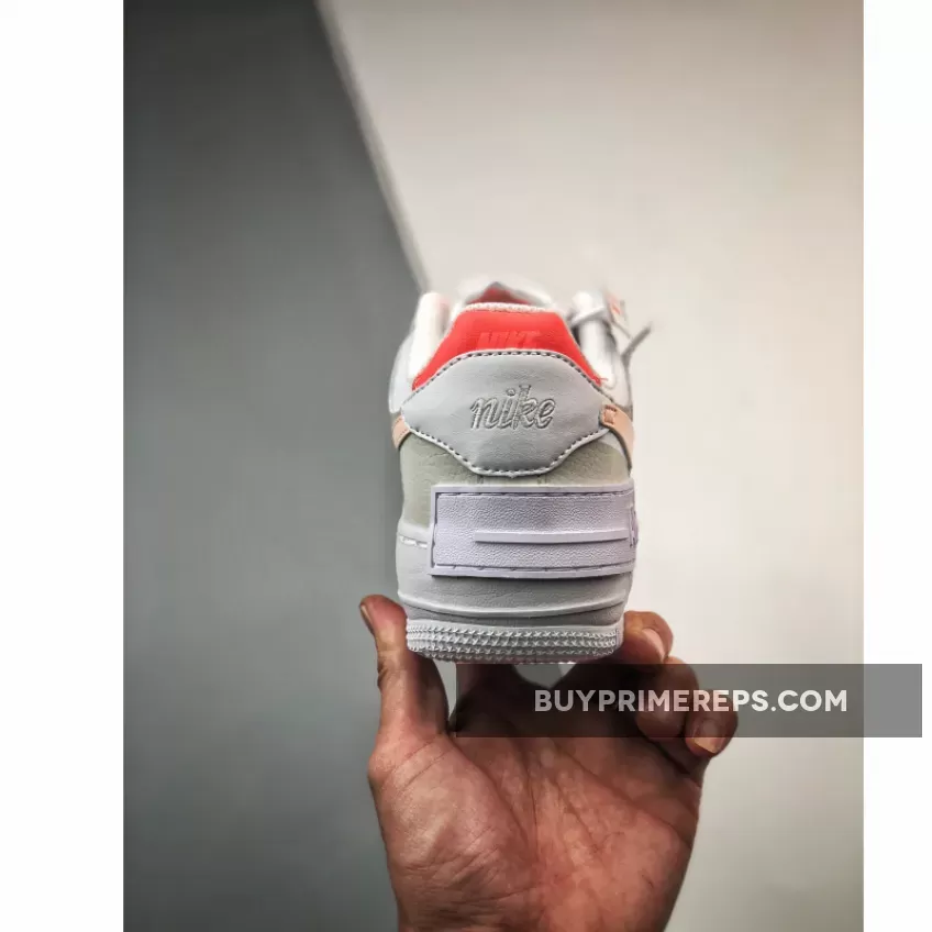 The tongue labels and painted heels of the Air Force 1 Shadow are done in a bright mango color, which adds a pop of color to the overall design. This shade of orange is both eye-catching and on-trend, making it a perfect choice for those who want to make a statement with their footwear.