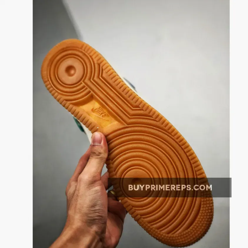 To complete the look, this Air Force 1 is finished off with a caramel-colored gum outsole. This classic detail adds a touch of nostalgia and adds to the overall appeal of the sneaker.