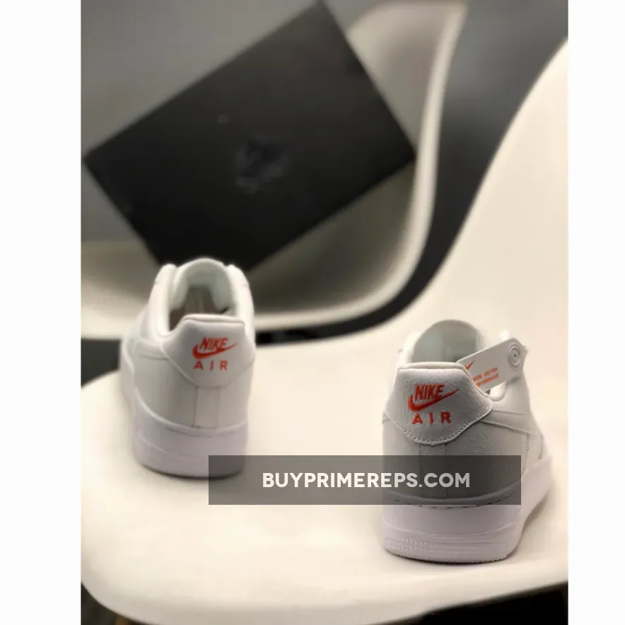 At the rear of the shoe, you’ll find the classic Air Force 1 logo with a red Swoosh, adding a bold element to the design. This attention to detail showcases Nike’s commitment to quality craftsmanship and style.